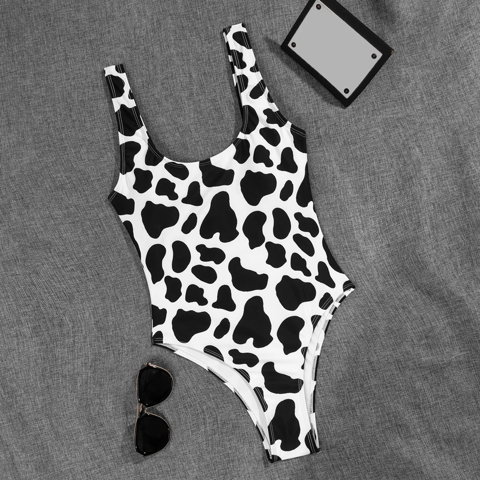 Женский сексуальный цельный купальник с u-образным вырезом и открытой спиной с принтом коровы