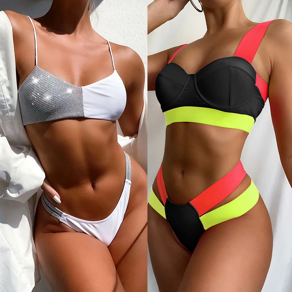 Женские купальники на косточках, сексуальные купальники, лоскутное ...