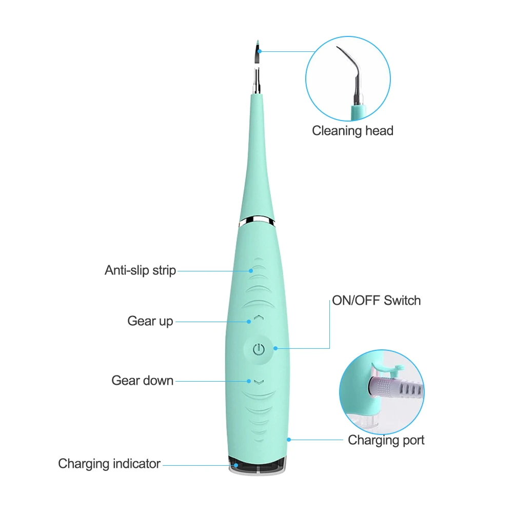Характеристики продукта: для стоматологических камней, зубного камня, пятен от дыма, высокочастотной вибрации зубного налета, чистого упрямого вычисления, здорового отбеливания зубов.