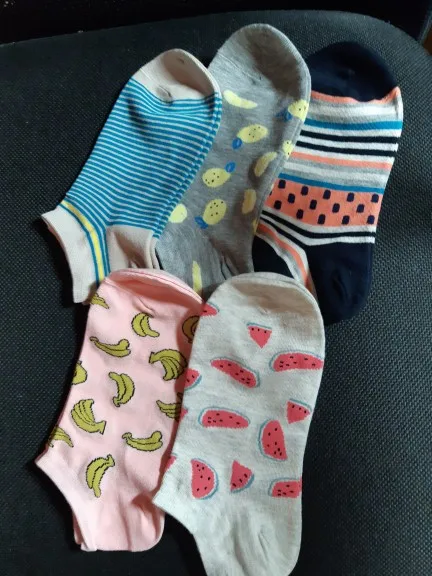 Носки кайфовые, весёлые, приятный на ощупь материал. Под кроссовки самое то. Пошиты аккуратно, торчащих ниток и корявых швов не обнаружено. За такую цену 5 пар вообще подарок. Буду заказывать ещё и не раз. Спасибо продавцу. 10/10
