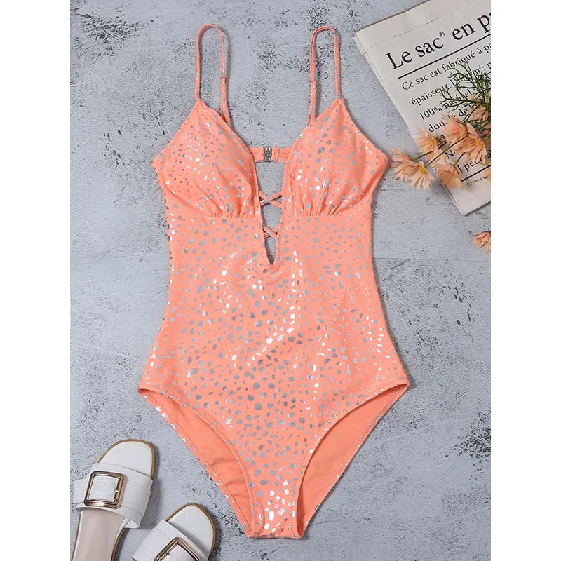 Купальник женский слитный с принтом, пикантный купальный костюм с ч...