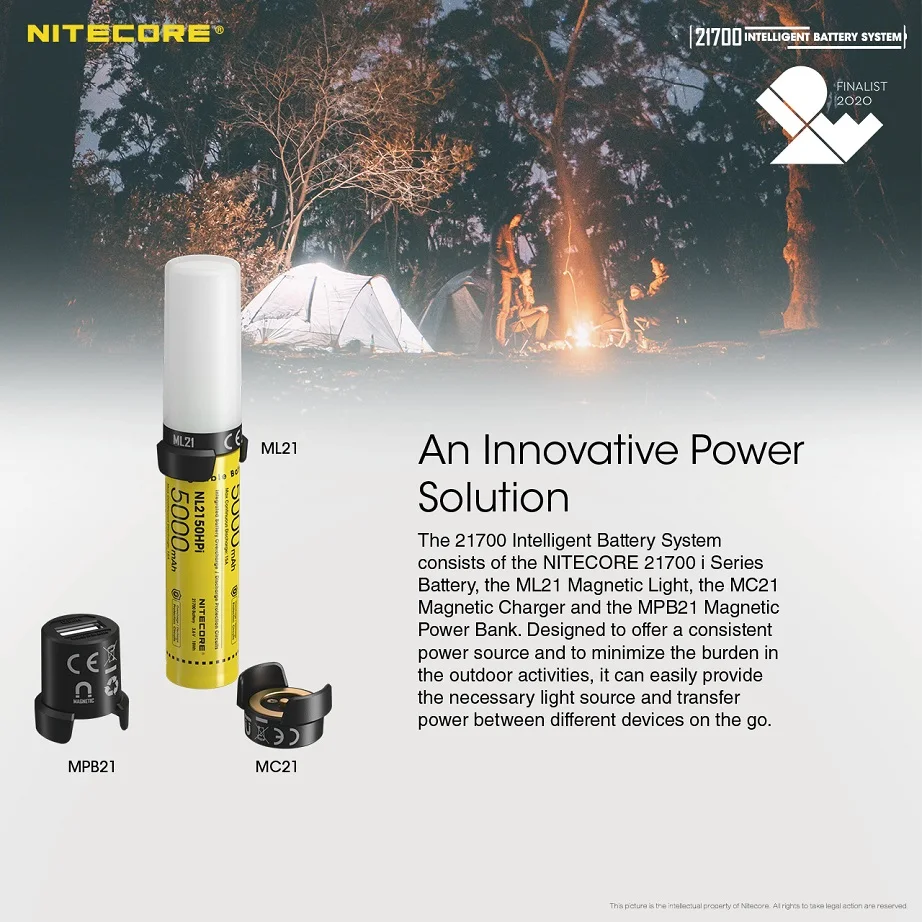 NITECORE 21700 интеллектуальная система батареи запущена как инновационное решение питания21700 интеллигентая (ый) Батарея Системы является инновационным Мощность решение, которое включает в себя NITECORE 21700 я серии Батарея, ML21 Магнитный светильник и MPB21 Магнитный Мощность банк. Предназначен для того, чтобы предложить последовательного источника питания, а также для того, чтобы уменьшить нагрузку в мероприятий на свежем воздухе, он может легко обеспечить необходимую светильник источник и передачи питания между различными устройствами где бы вы ни находились.Батарея серии i 21700Как патентный продукт, разработанный NITECORE (патент №. ZL201820118916.0, патент США в ожидании), батарея серии 21700 i-это Фирменная литий-ионная аккумуляторная батарея 21700 с двойным выходом с положительной и отрицательной полярностью на обоих концах и высокой плотностью энергии. Он обеспечивает высокоэффективный выход, минимизируя потерю мощности из-за внутреннего сопротивления. Аккумулятор серии 21700 i имеет плотность энергии до 240 МВтч/г, что на 11% выше, чем батареи 18650.Двойная полярность батареи серии 21700 i на обоих концах нарушила соглашение о соединении головки и хвоста фонарика, чтобы минимизировать его размер и вес. Таким образом, внутреннее сопротивление значительно уменьшается, чтобы обеспечить прямое преобразование энергии для питания устройства. Благодаря новейшей технологии и технике, это может принести больше возможностей для нашего дизайна фонарика, особенно NITECORE i4000R, ориентированный на будущее 21700 интеллектуального тактического фонарика. Батарея серии 21700 i совместима с обычными зарядными устройствами, включая NITECORE UMS2, UMS4, UI1, UI2 и другие, кроме других аксессуаров в 21700 интеллектуальной аккумуляторной системе. Он также может заряжать обычные фонарики 21700 и другие совместимые устройства.Магнитный светильник ML21 High CRIС максимальной выходной мощностью 80 люменов, он идеально подходит для ручной или хвостовой стойки, которая будет использоваться при коротком освещении, например, при чтении, кемпинге или аварийной ситуации.Прикрепите ML21 к концу, отмеченному (+) батареей серии i, чтобы активировать светильник. Отсоедините, чтобы деактивировать его.MPB21 Магнитный блок питания модульВ сочетании с батареей серии 21700 i, она стремится обеспечить последовательный источник питания в наружной среде. После подключения MPB21 к концу, отмеченному (+) батареей серии i, используйте usb-кабель для подключения usb-устройства к входному/выходному порту для начала процесса зарядки.