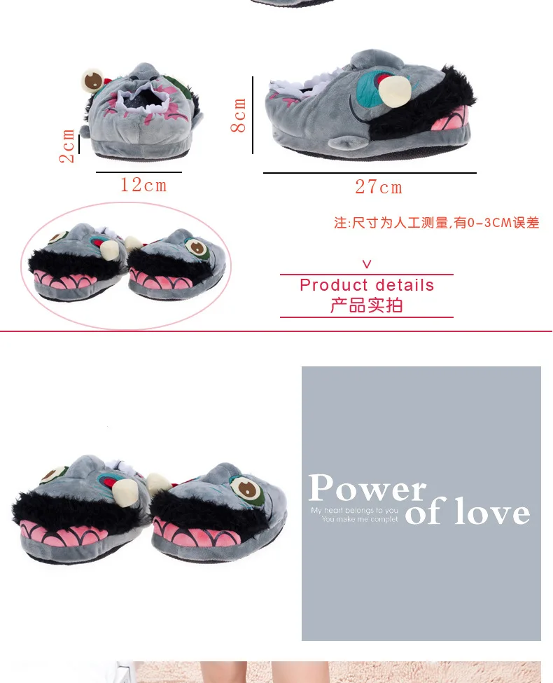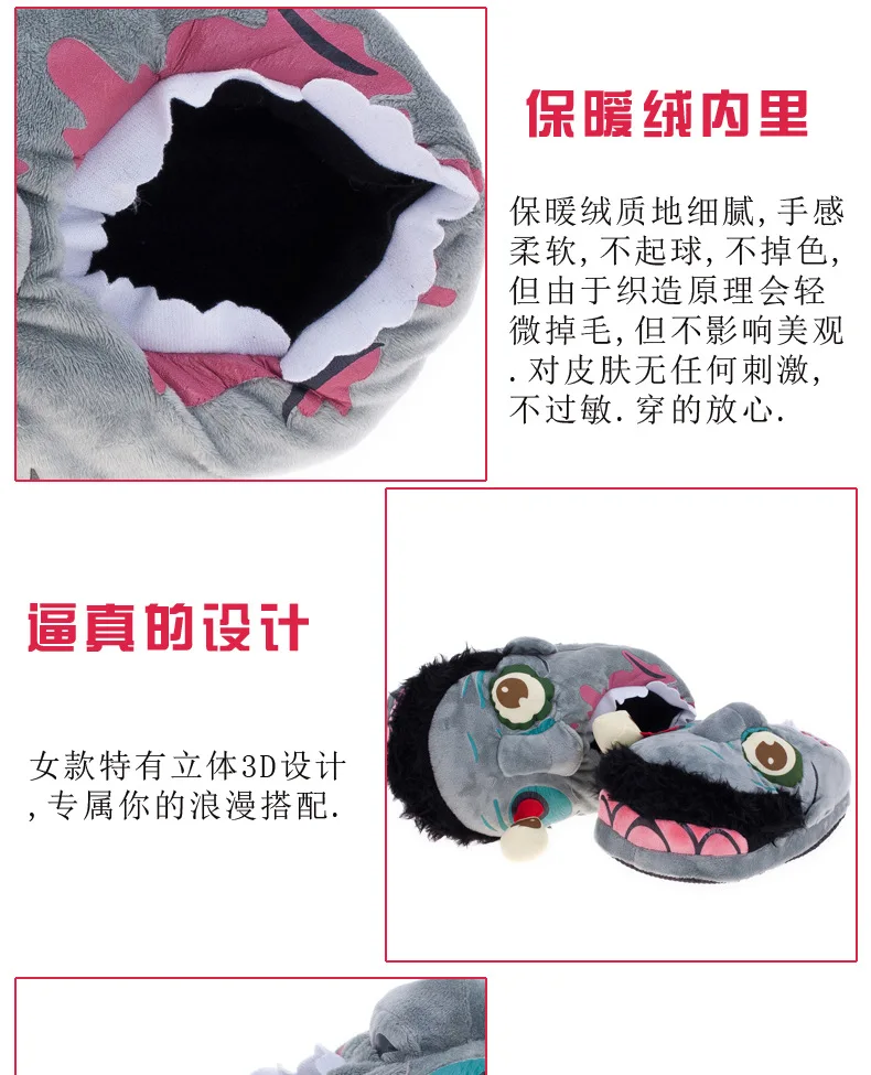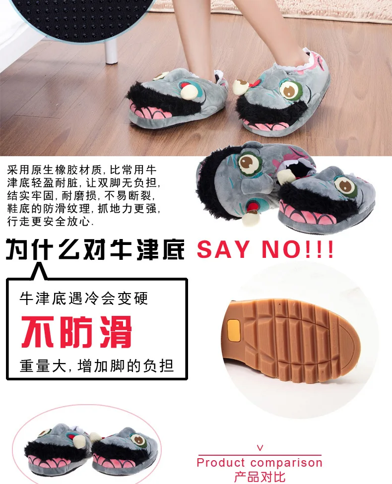 Тапочки унисекс в виде зомби для зимы, теплые домашние тапочки для ...