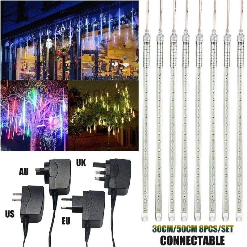 Водонепроницаемая светодиодная гирлянда метеоритный дождь, 30 см, 8 трубок, уличные Праздничные рождественские украшения, вилка для ЕССША