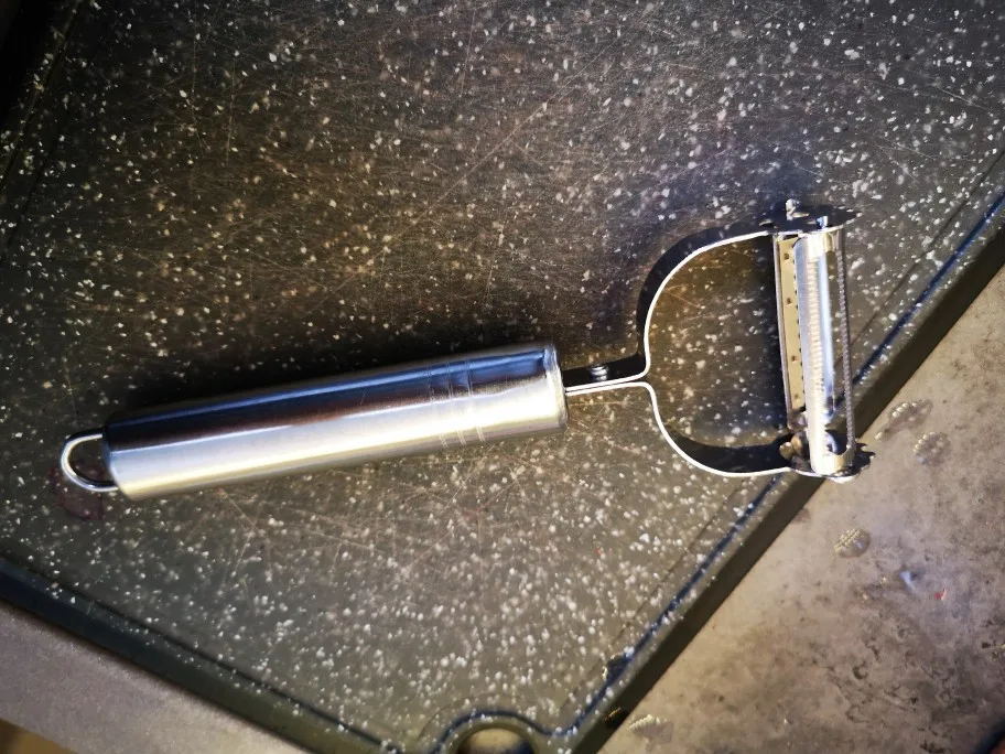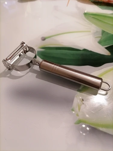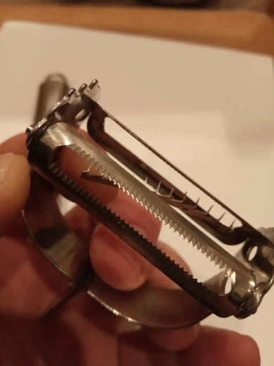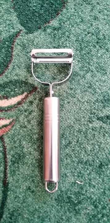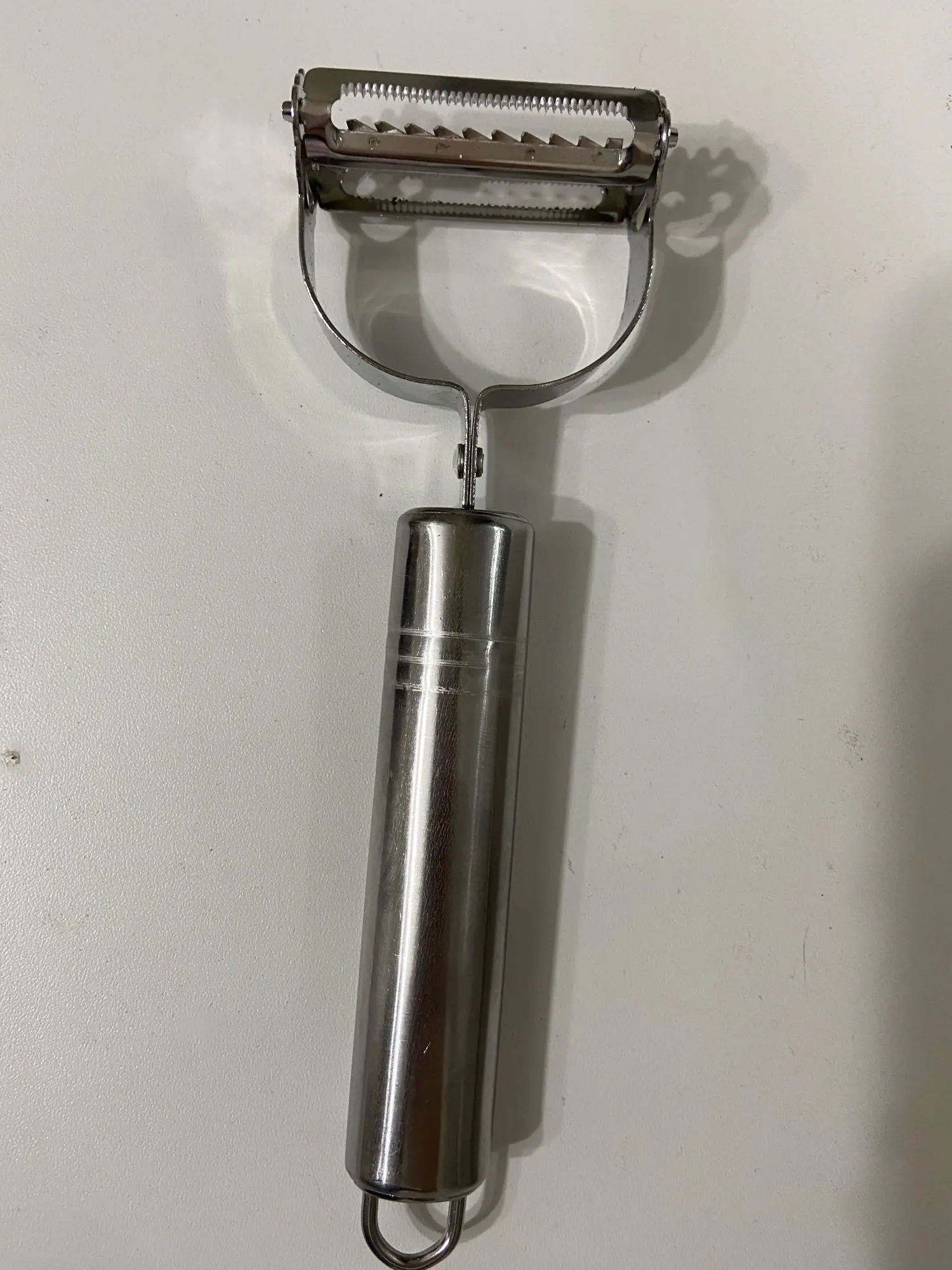 Одной стороной чистит овощи,другой режет соломкой.Острая.Всё,как надо