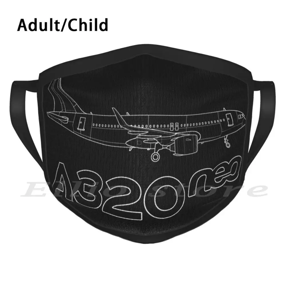 Аэробус A320Neo Белый контур моющаяся маска с фильтром теплая маска шарф для самолета Воздушный самолет Летающий двигатель Аэробус A320 Боинг