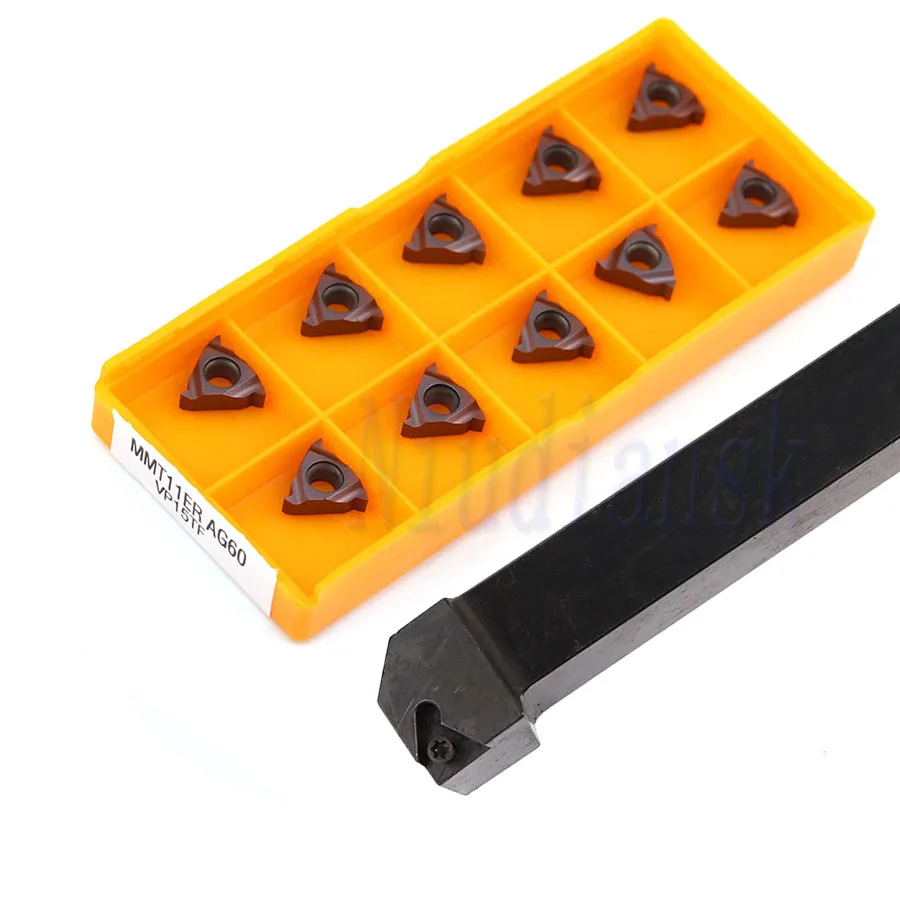 10 шт., твердосплавные вставки 11ER AG55 11IR AG60, 1 шт., SER1010 SER1212 SER1616H11 SEL, держатель внешней резьбы, набор токарных инструментов с ЧПУ