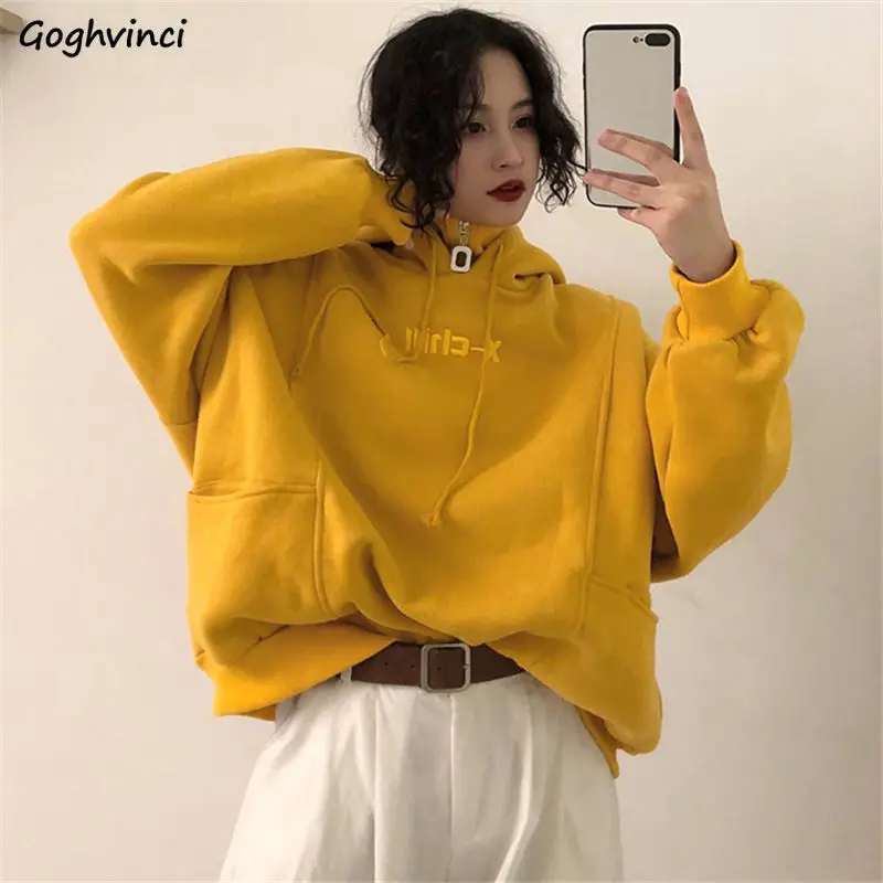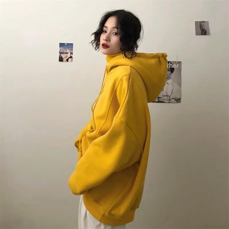 Для женщин с капюшоном и большим зимняя одежда с ворсом, на мальчиков и девочек, теплые кофты с капюшоном с высоким, плотно облегающим шею воротником с нашивкой в виде надписи "в Корейском стиле Стиль Свободные повседневные кепки, кепки в стиле шик