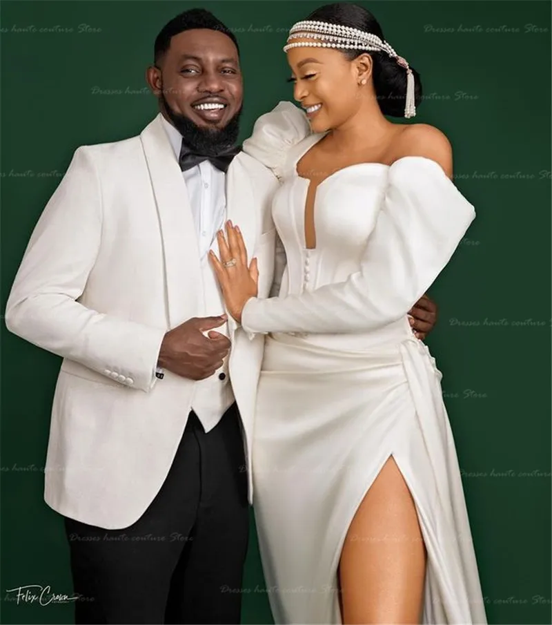 2021 арабские атласные белые платья для выпускного вечера с открытыми плечами и длинным рукавом Формальные Вечерние платья с Боковым Разрезом Вечернее платье