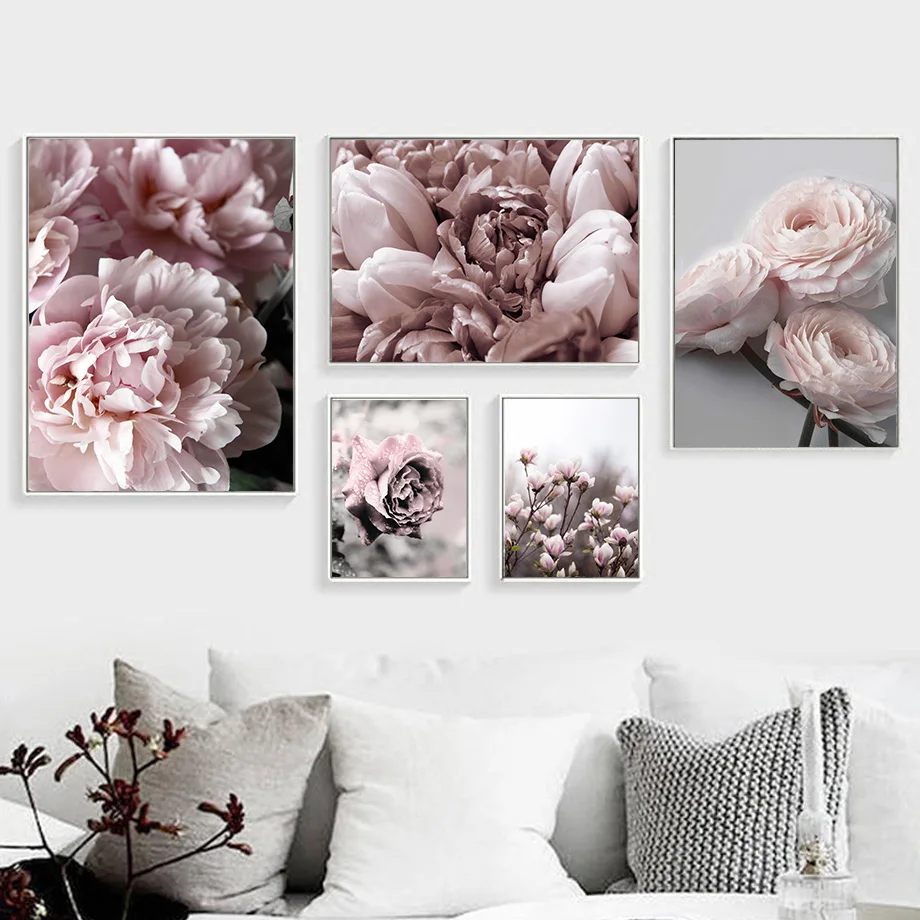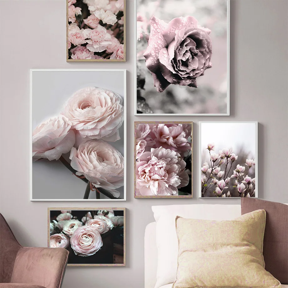 Настенные постеры с розовыми цветами, цветами вишни, розой, пионами...