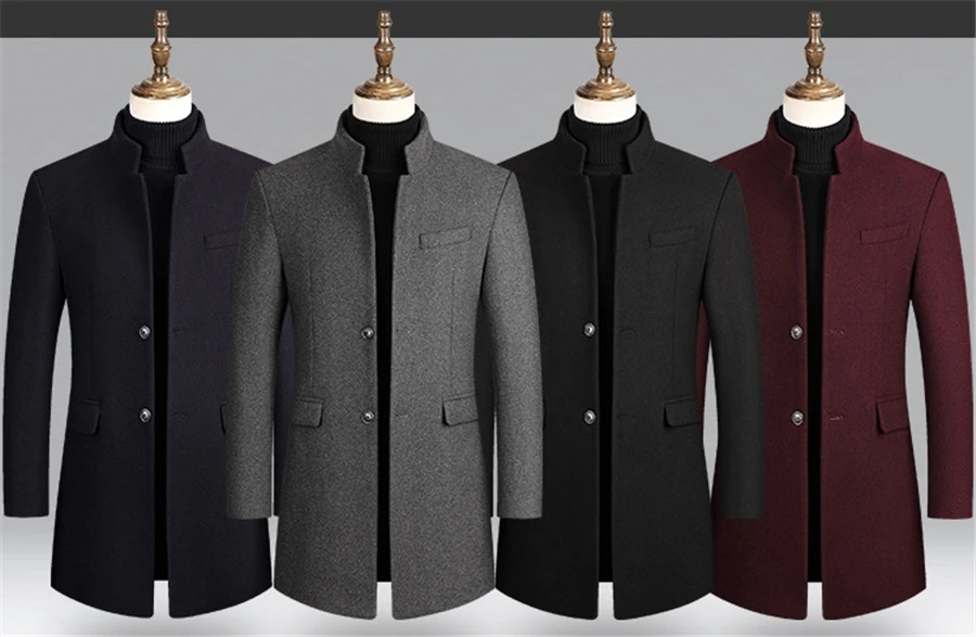2021 шерстяные пальто, мужские зимние куртки, приталенные мужские модные шерстяные куртки на пуговицах с воротником-стойкой, верхняя одежда, куртки, тренчи