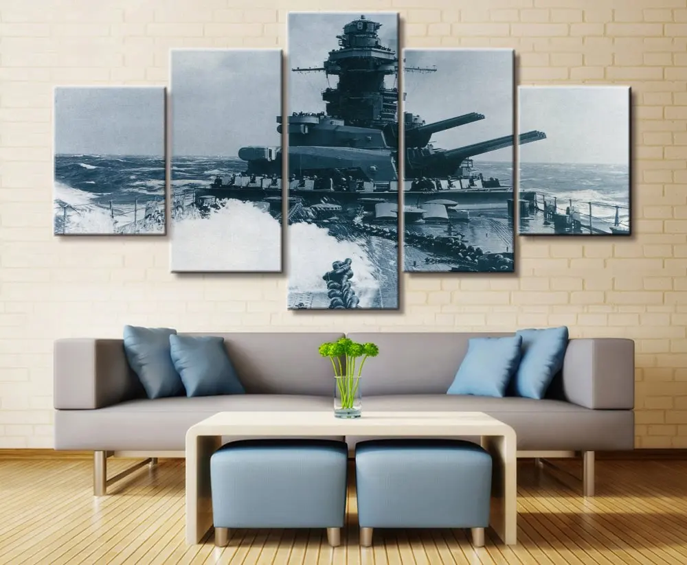Набор украшений для комнаты, искусственный 5 предметов, боевой корабль Бисмарк, военный холст, картина для внутренней живописи