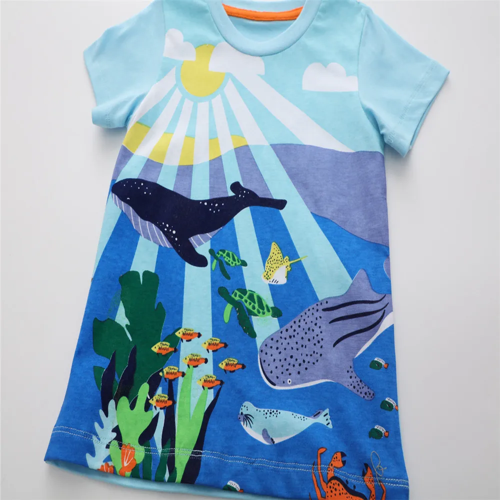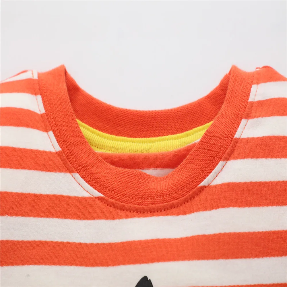 Футболка хлопковая в полоску для мальчиков и девочек, милый топ с принтом животных, летняя одежда для начинающих ходить детей