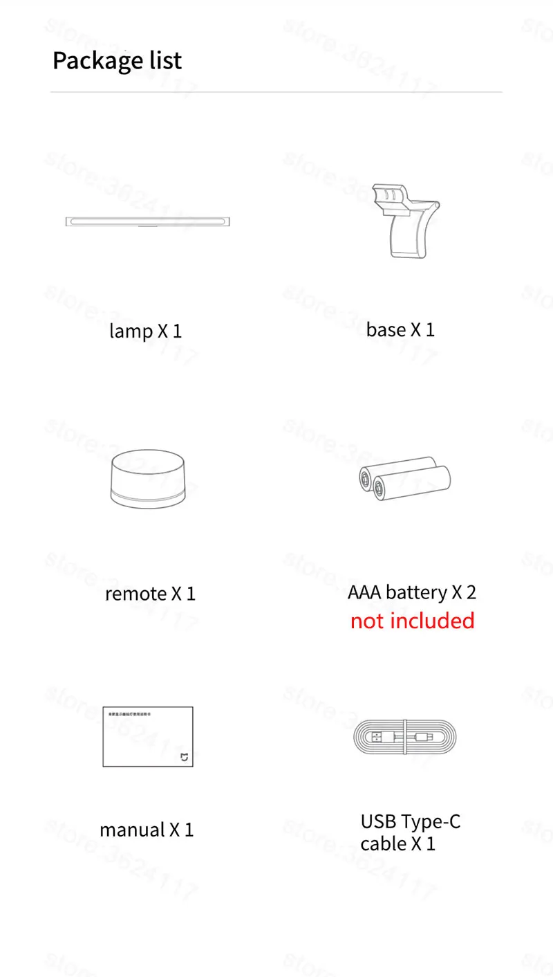 1 * Лампа 1 * основание 1 * пульт дистанционного управления 2 * AAA батареи (не включены) 1 * Руководство пользователя 1 * кабель USB Type-C