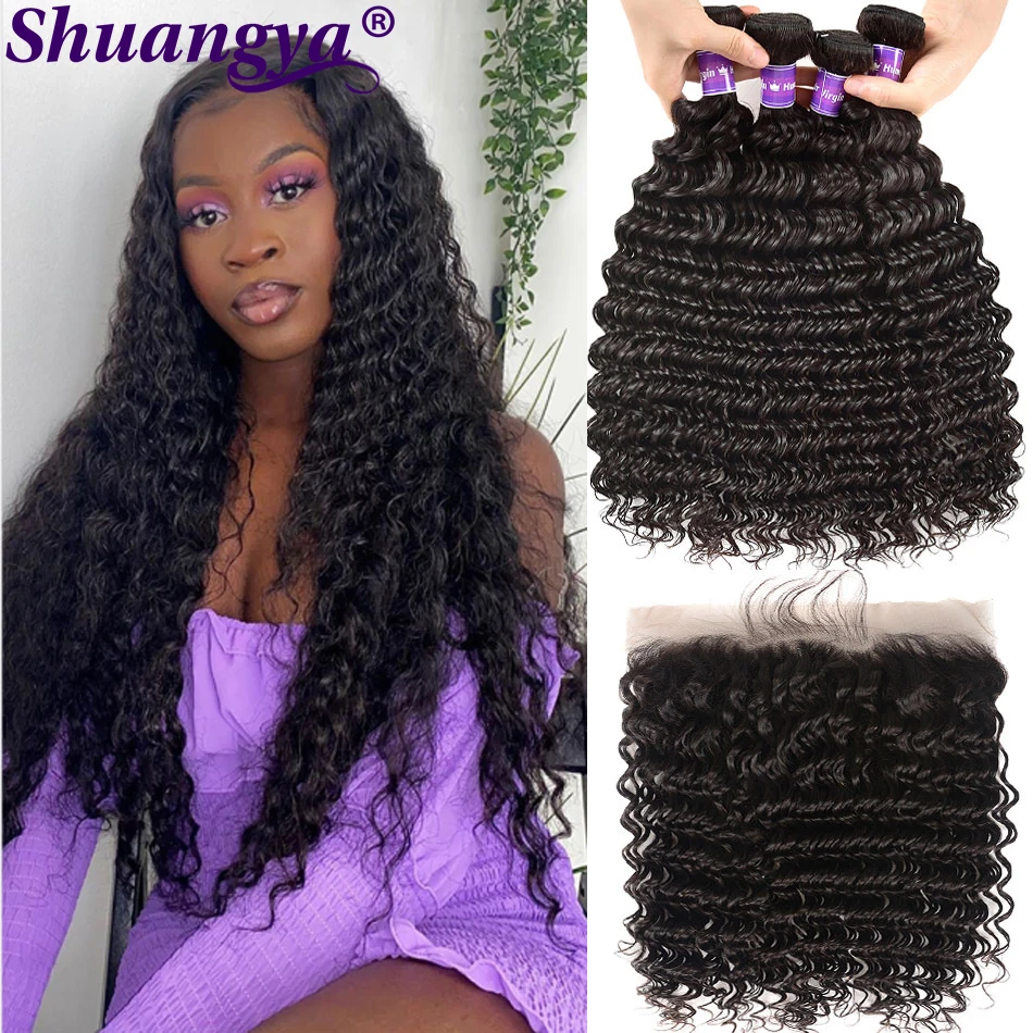 Свободные глубокая волна пряди с фронтальной перуанские волосы пряд...