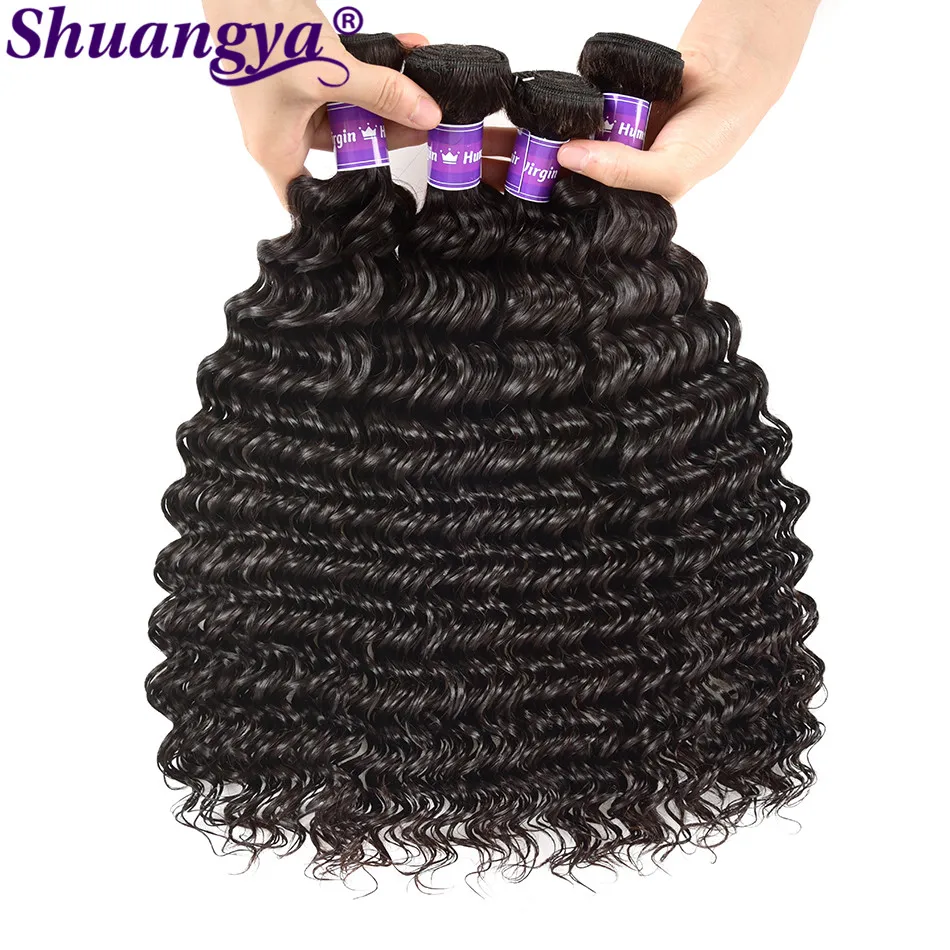 Монгольские человеческие волосы с глубокой волной, пучки с фронталь...