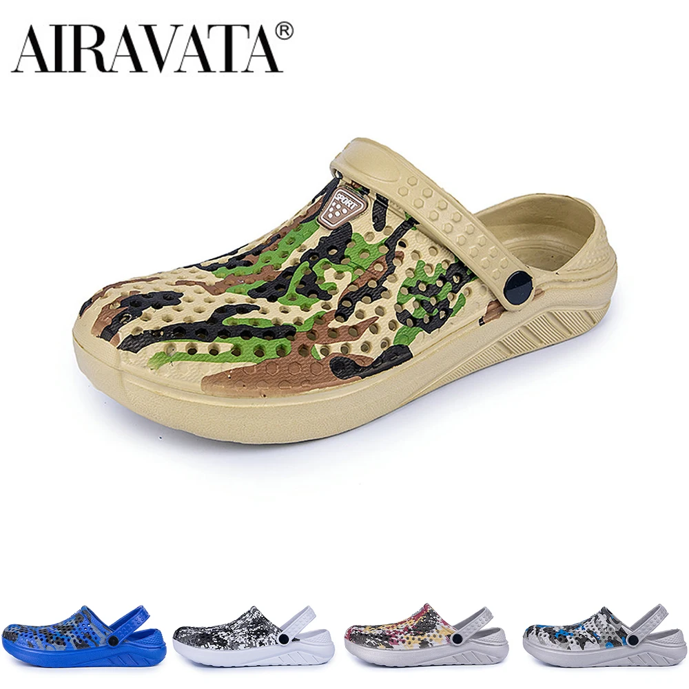 Airavata, садовая обувь, мужские сандалии, пляжные камуфляжные шлепанцы на плоской подошве, летние уличные легкие повседневные туфли с дырками