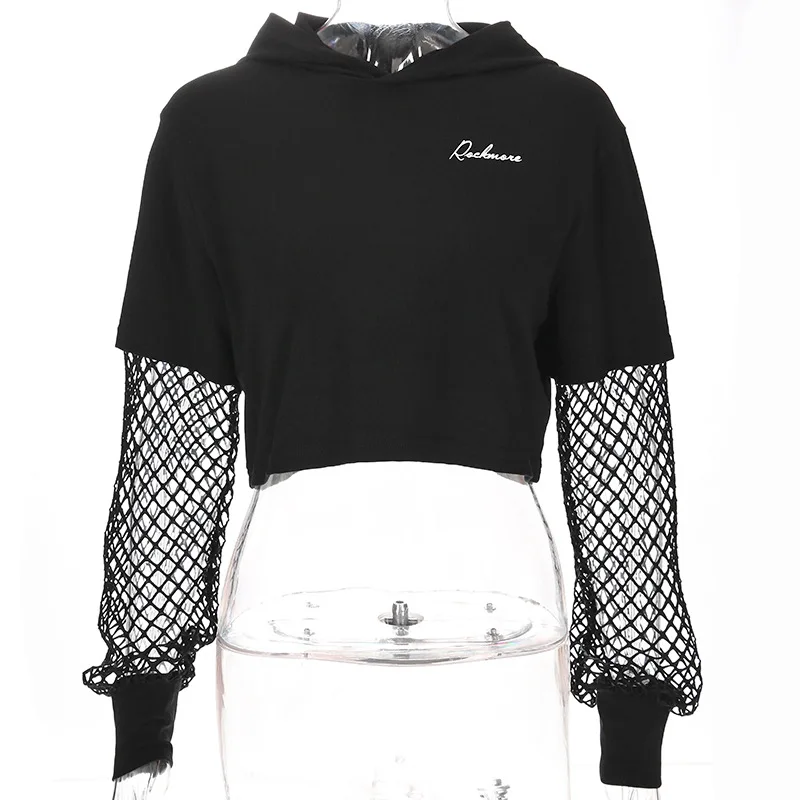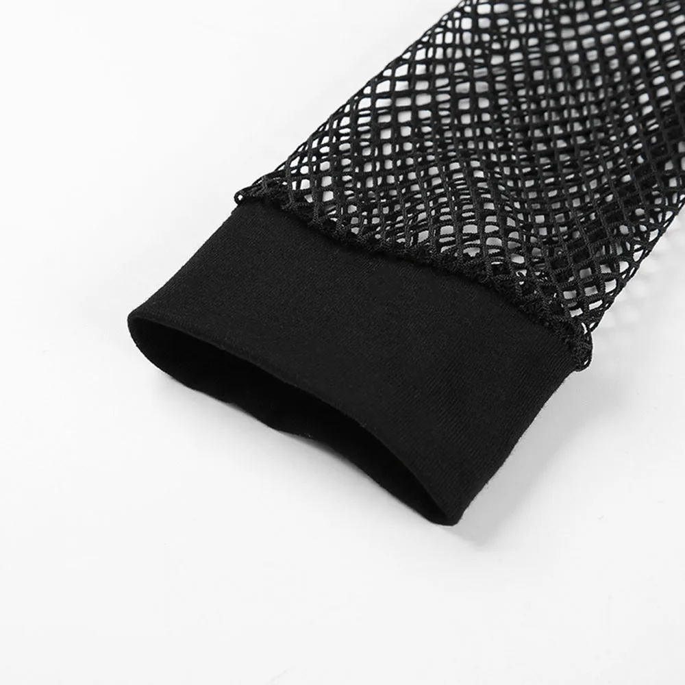 Fishnet Mesh See-through Black shirtsHarajuku Sexy Long Sleeve Tee Tops