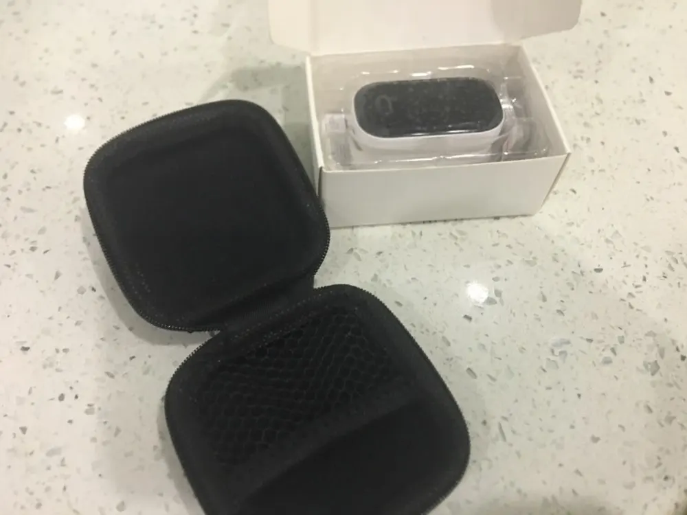 До г. о. Балашиха посылка шла три недели. Упакована посылка хорошо. Описанию соответствует. Не думаю, что измерения точные, но по крайней мере одновременные измерения пульса смарт браслетом и данным устройством совпадают. Батареек в комплекте нет. Кейс стандартный, такой обычно присылают вместе с наушниками.