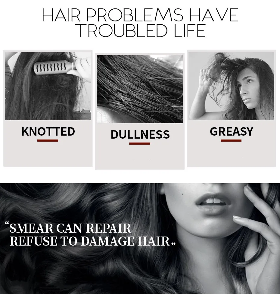 1. Ремонт глажки Марокканский глицерин помогает восстановить качество волос. 2. Увеличение блеска Натуральная эссенция питательные и блестящие волосы. 3. Расческа EASYTO E ssential масло проникает в сердцевину волос, чтобы сгладить. 4. Не жирный Я выгляжу как светильник, так и свежий, его легко впитывать.