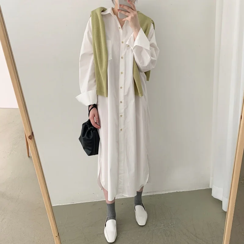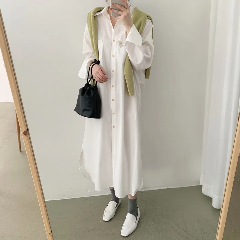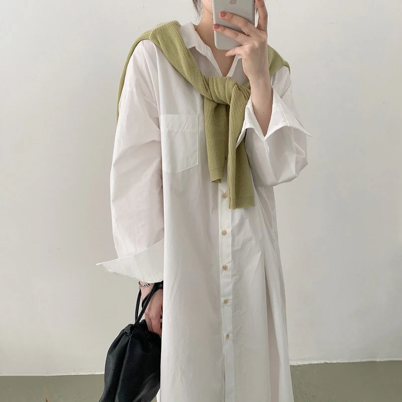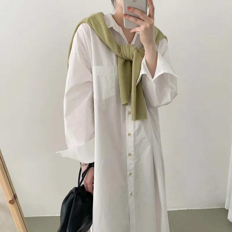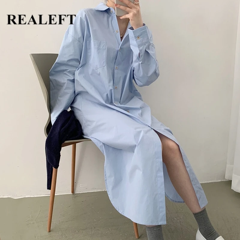 Платье-рубашка REALEFT женское прямое с длинным рукавом, Элегантное однобортное свободного кроя, с карманами, весна-осень 2021
