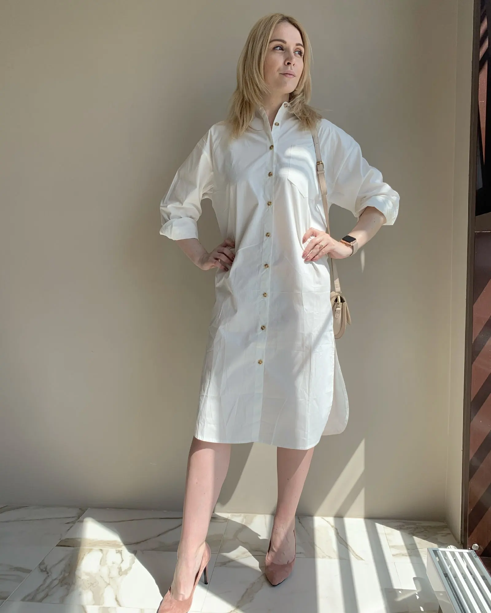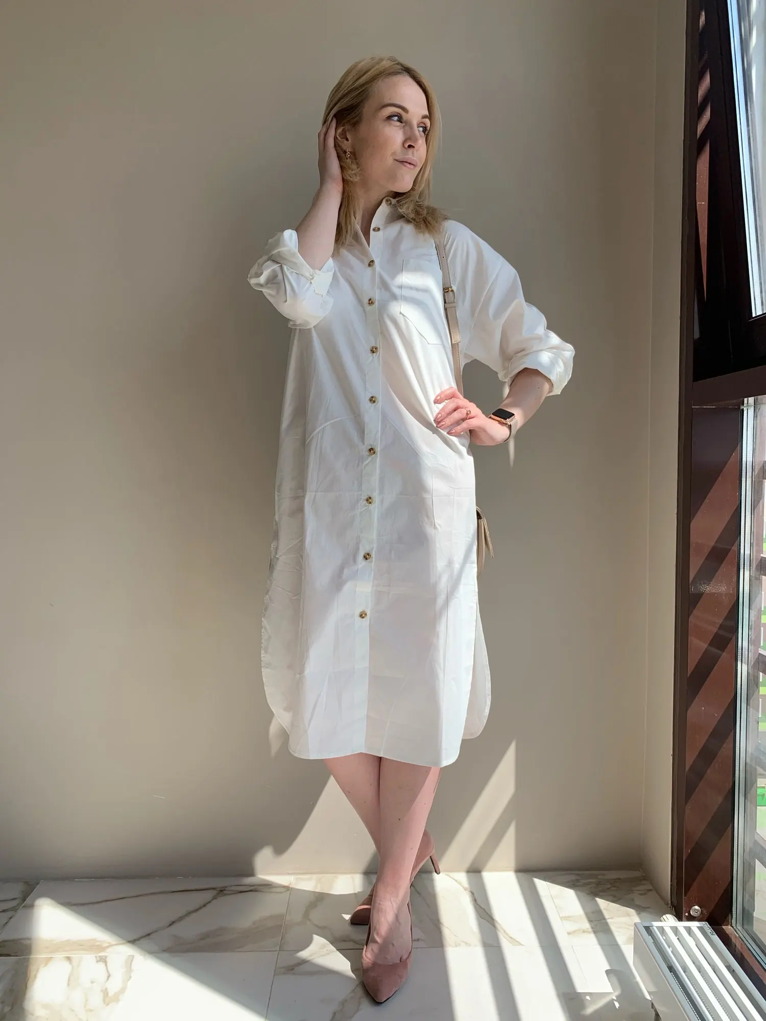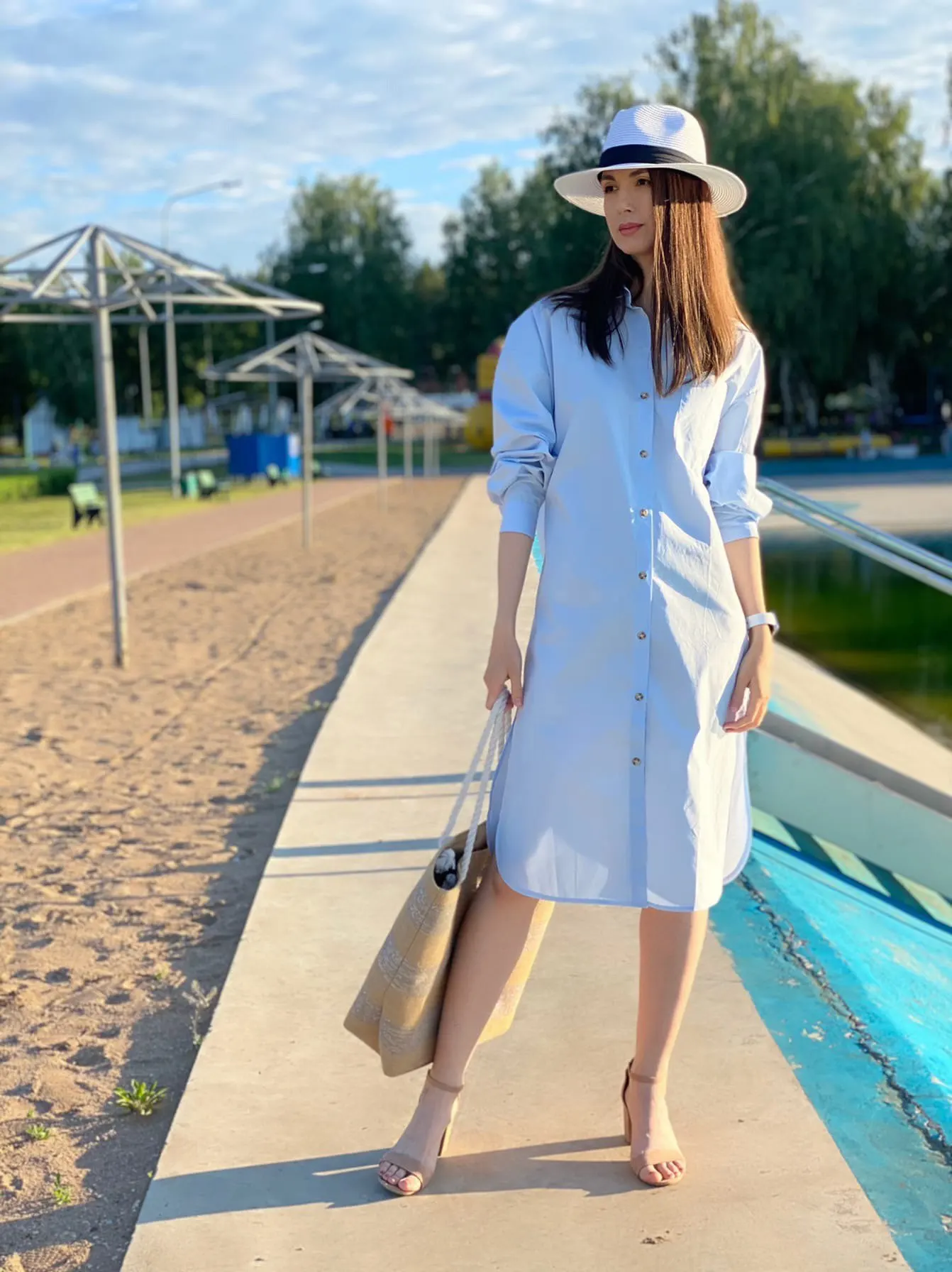 Свободная рубашка в пол Магазин: REALEFT Official Store Упаковка: почтовый пакет + зип-пакет; Комплект: Женская рубашка свободного кроя. Брала размер S на свои параметры: объём груди - 86 см объём талии - 64 см объём бёдер- 92 см мой рост 168, село хорошо, размерная таблица продавца соответствует. Размерный ряд: S, M, L, XL. На странице предоставлено в белой и голубой расцветке. Доставка 3 недели в Украину. Характеристика: Брала платье-рубашку на лето. У рубашки отличная ткань, не просвечивается, постороннего запаха при распаковке нет, ткань очень приятная к телу. У рубашки есть прямые рукава, на груди присутствует кармашек. Длина чуть выше косточки.