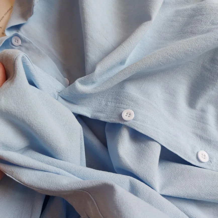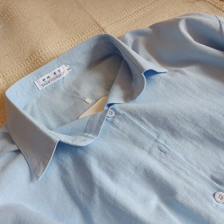 Отличный вариант на весну- лето. Натуральный материал, но не просвечивает. Доступно в 2 расцаетках и 4 размерах. На 90/70/105 брала размер L. Село свободно. На рост 176 село прилично. Рукава 3/4. По бокам крой идет волной. Пуговки все пришиты крепко, швы ровные, лишних ниток нет, запаха нет. Рубашка классная, легкая. На повседневку и на пляж