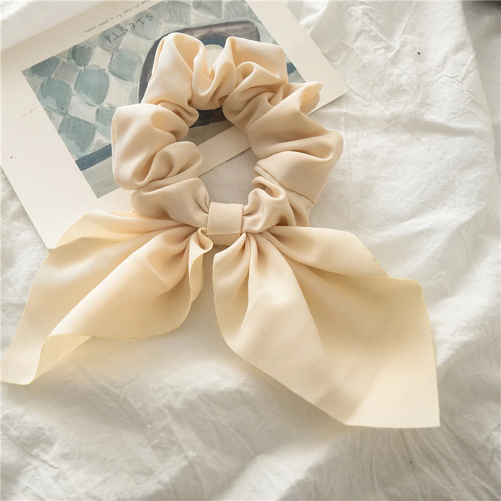 Новинка 2021, модный Штатив для хвоста, шарф с кроличьими ушками, эластичная резинка для волос, женские резинки для волос, однотонные ленты для волос