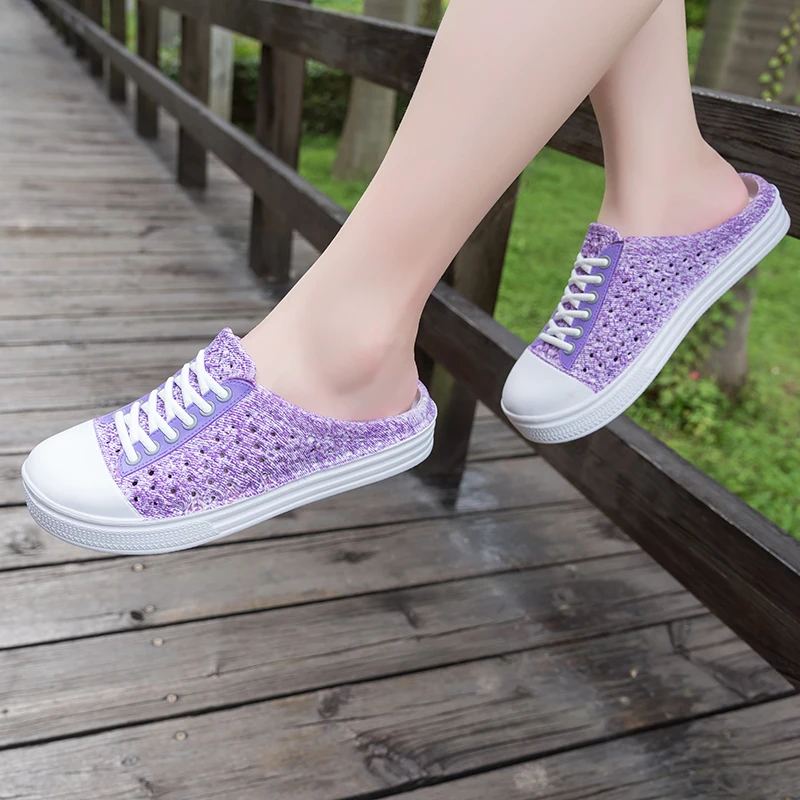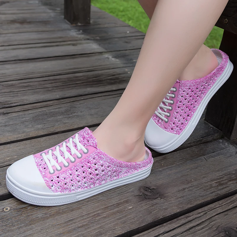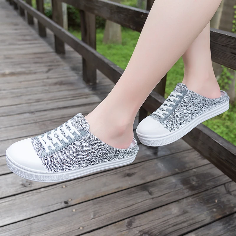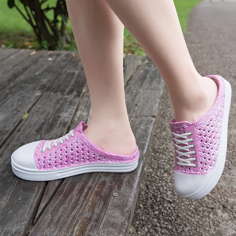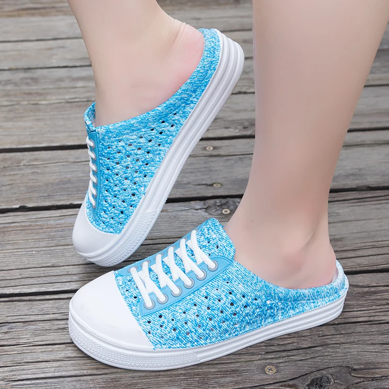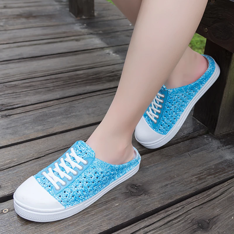 Туфли Airavata женские для сада и пляжа, сандалии без застежки, плоская подошва, повседневные холщовые шлепанцы, с перфорацией, летние Тапочки