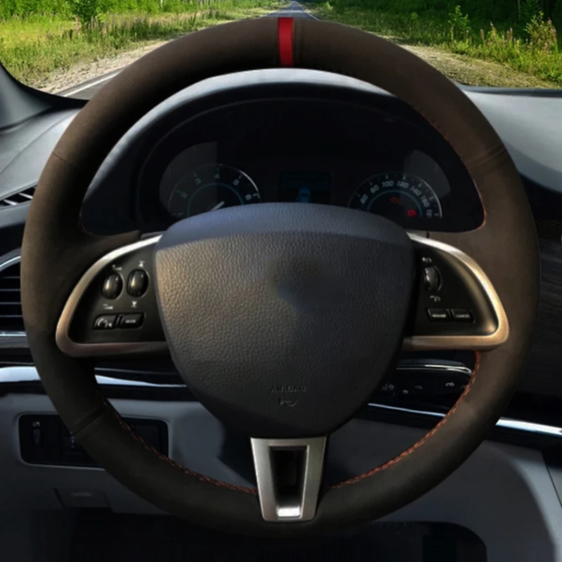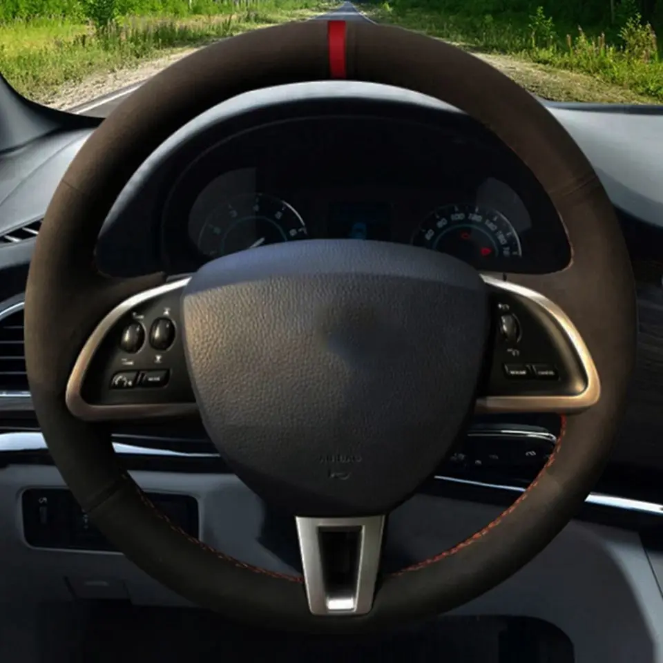 Сшитый вручную черный замшевый красный маркер Чехлы рулевого колеса...