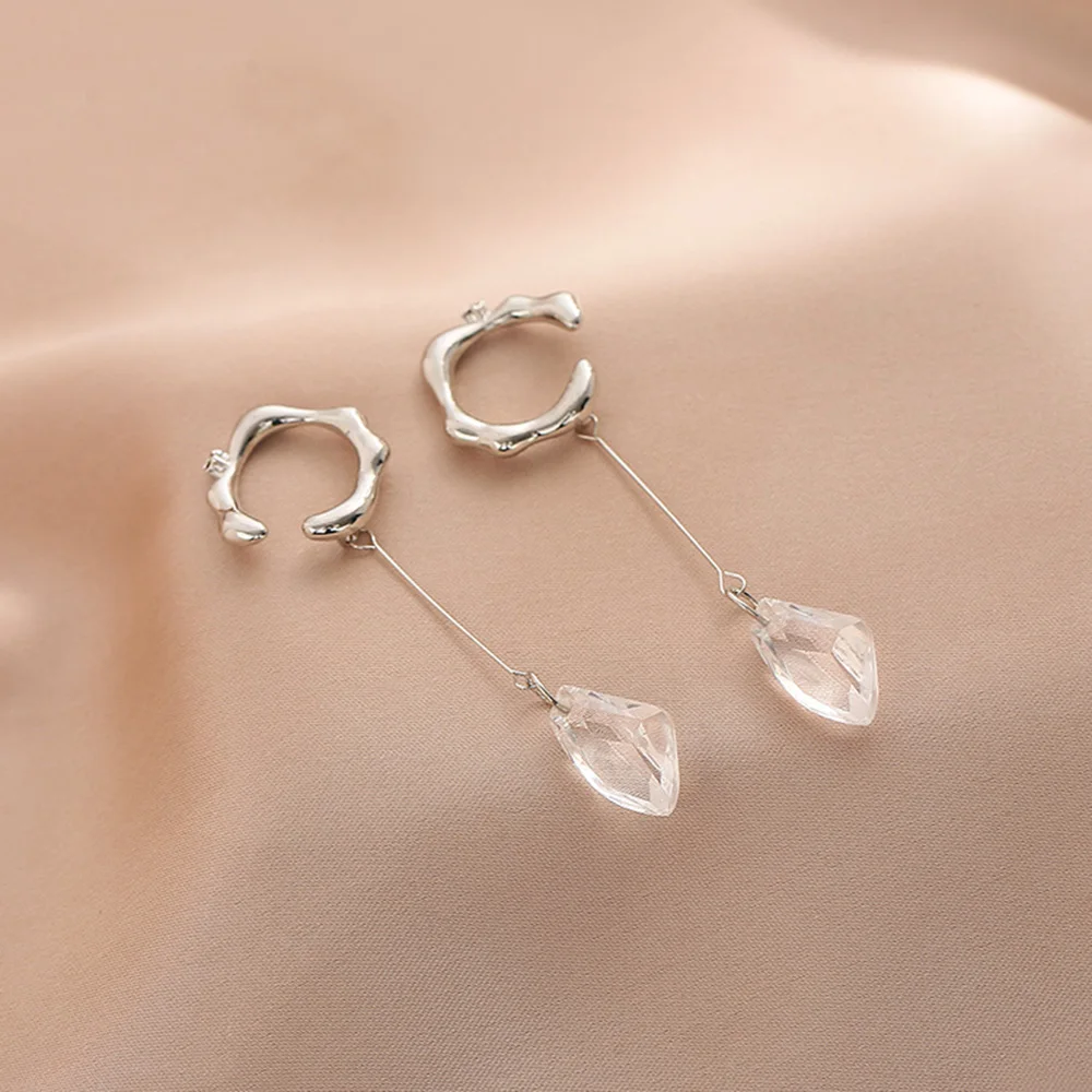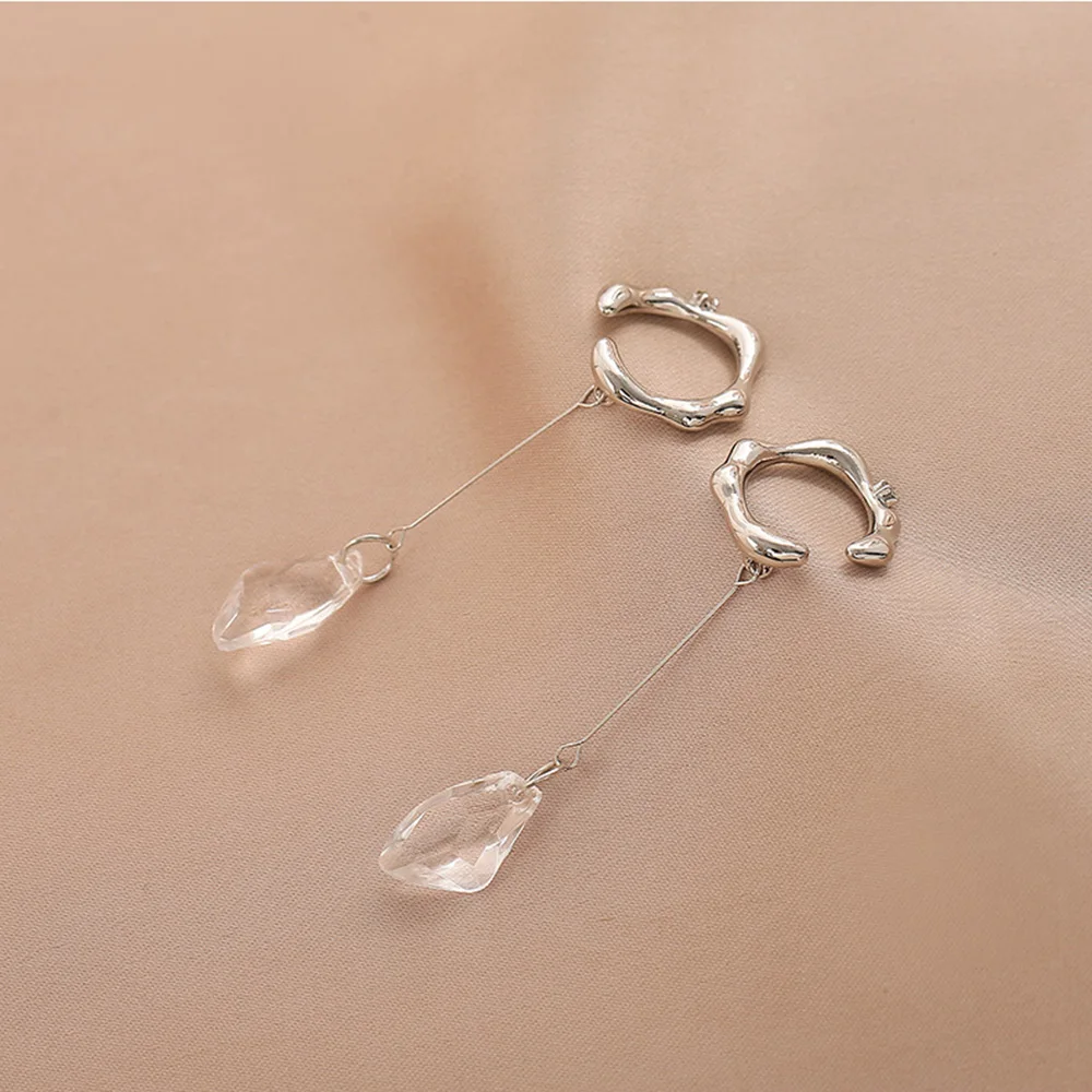 Серьга-клипса серебристого цвета, металлическая, с подвеской-кисточкой, для женщин и девочек, ювелирные украшения для вечерние