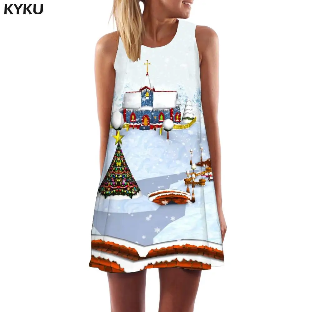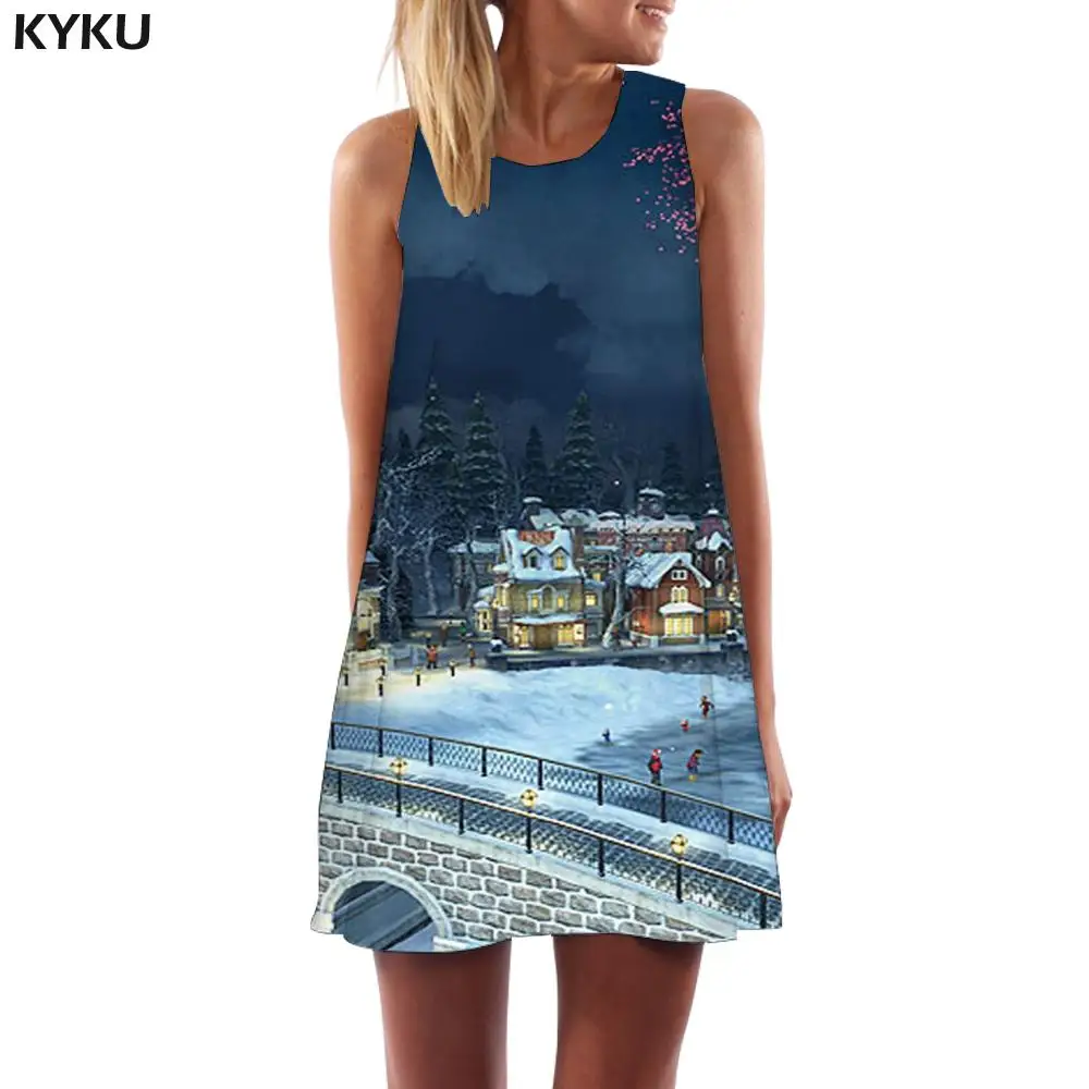 Женское платье без рукавов KYKU, винтажное платье-туника с принтом ...