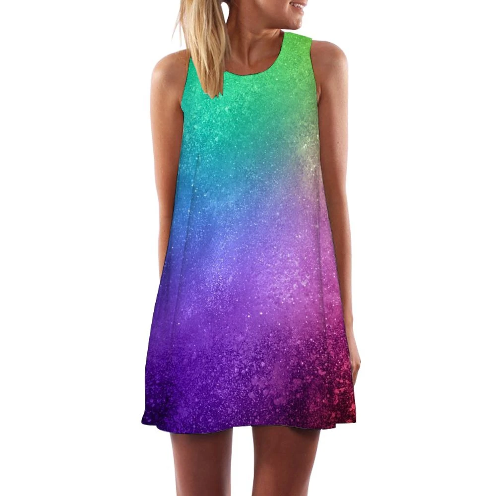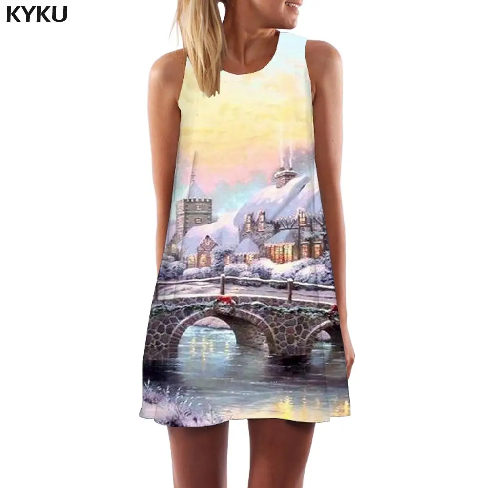 Женское Радужное платье KYKU, винтажное платье с 3D-принтом водопад...