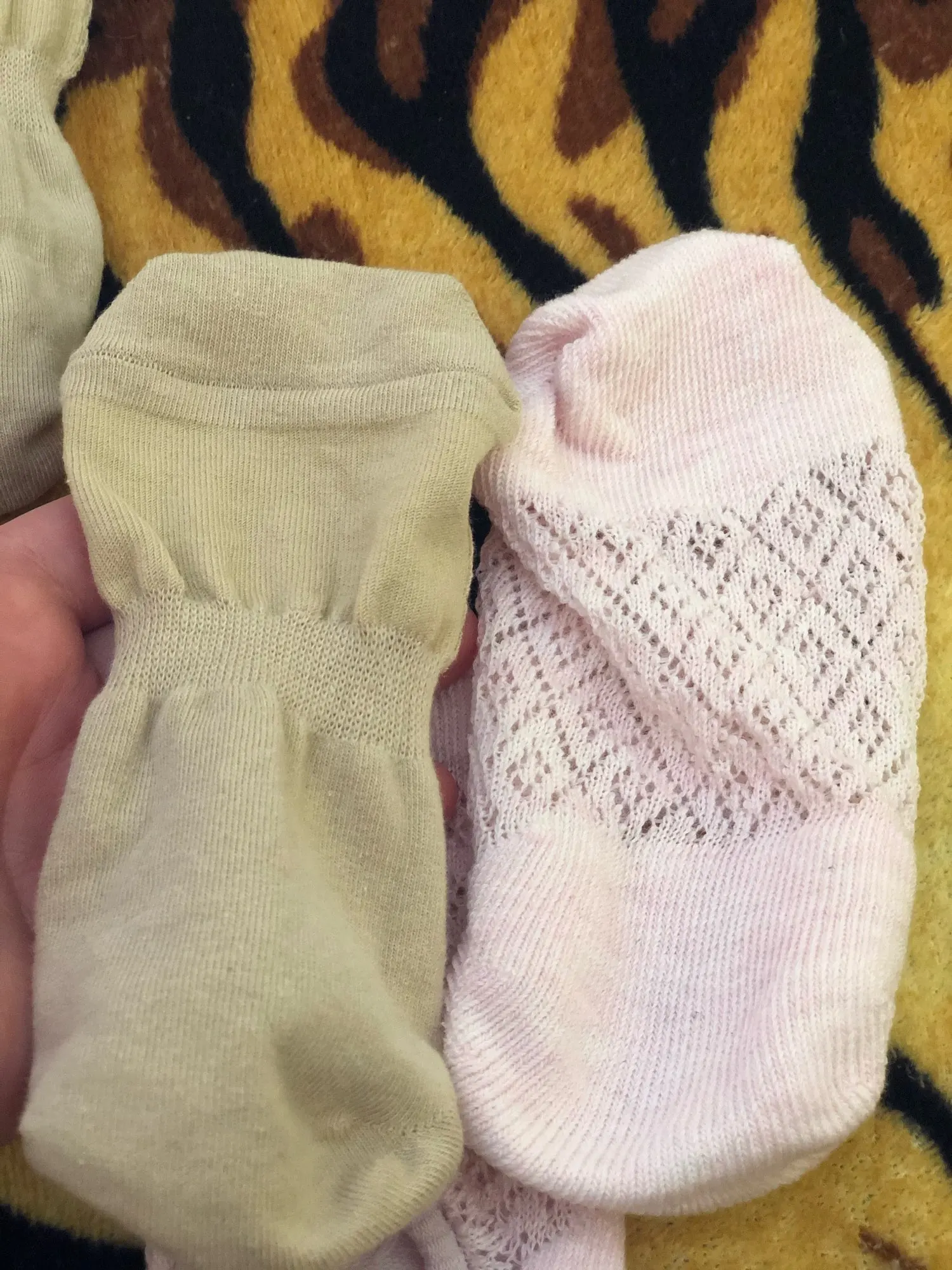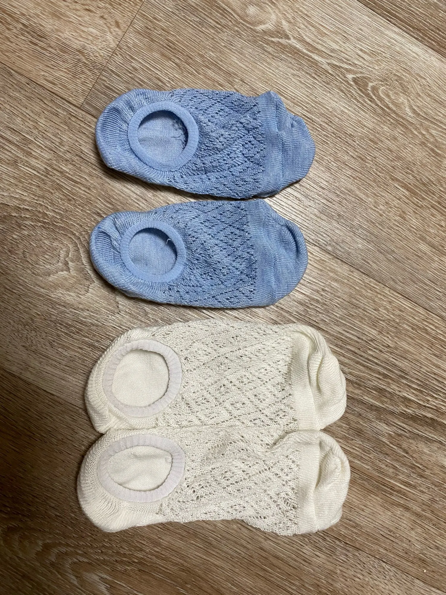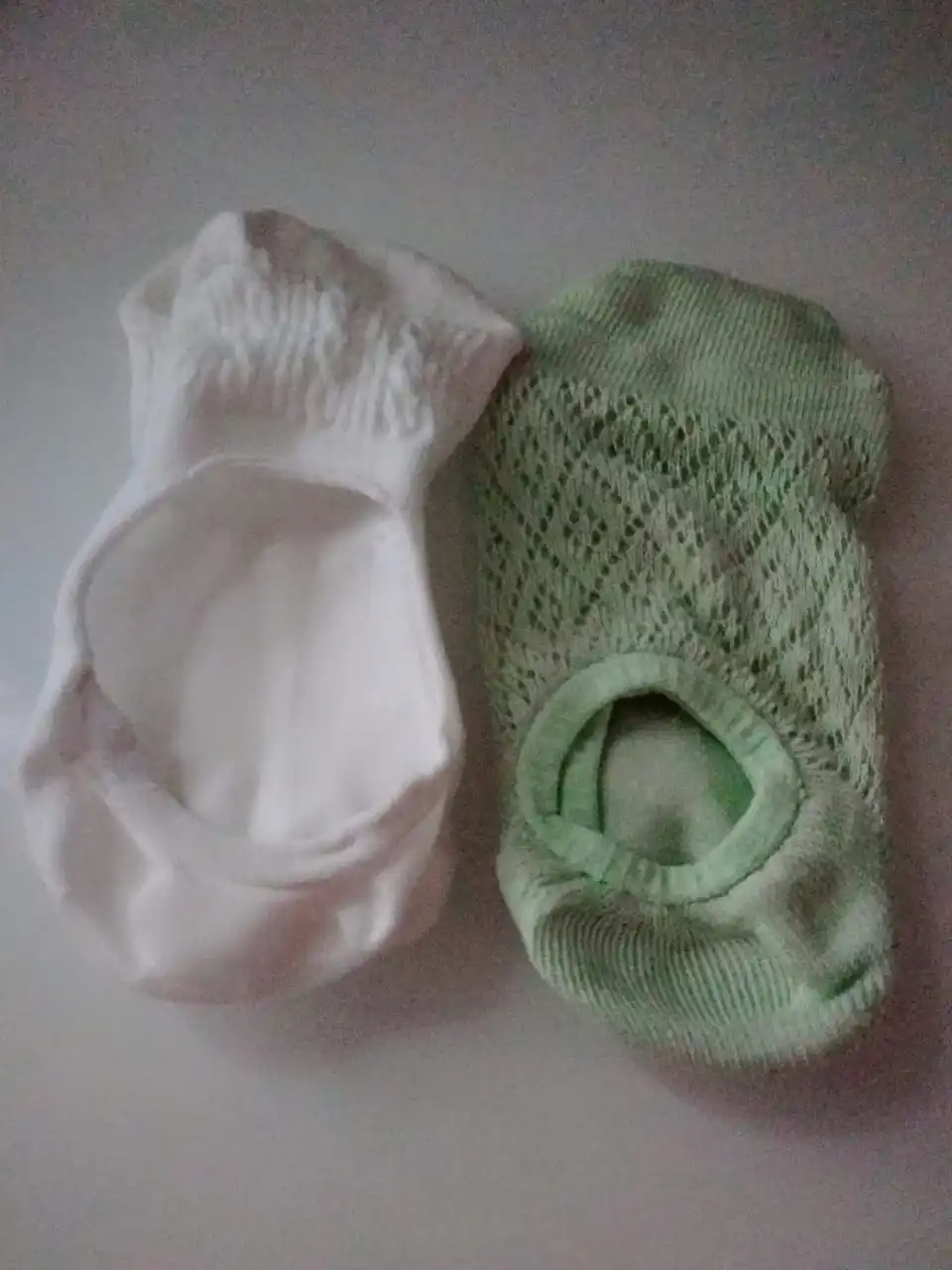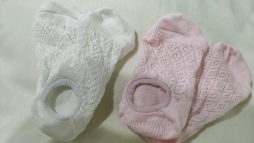 Классненькие носочки. Тоненькие. Хлопок. На пяточке есть силиконовая полоска, но и без неё нормально держатся. У меня 35 размер. Тянутся хорошо. Думаю до 38-39 размера будут нормально. Брала с купоном. 2 пары обошлись около 70 центов. Класс! Спасибо.