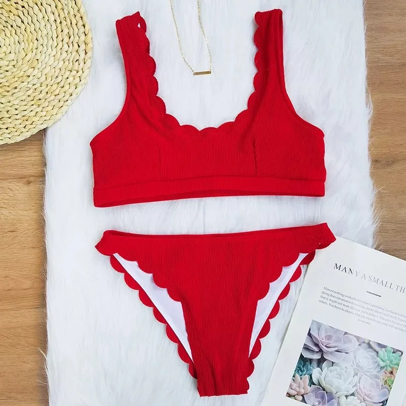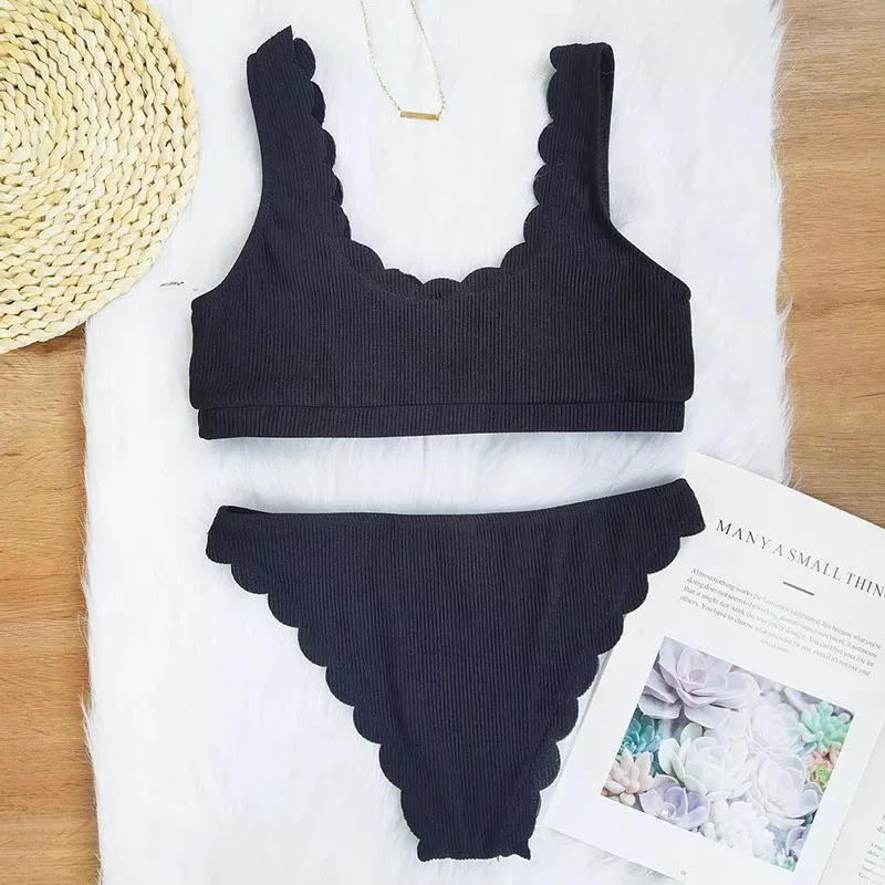 Новинка 2021, сексуальный комплект бикини с двумя пикантами, купальник, женский купальник, купальный костюм с зубцами, купальный костюм, однотонная ребристая бразильская пляжная одежда