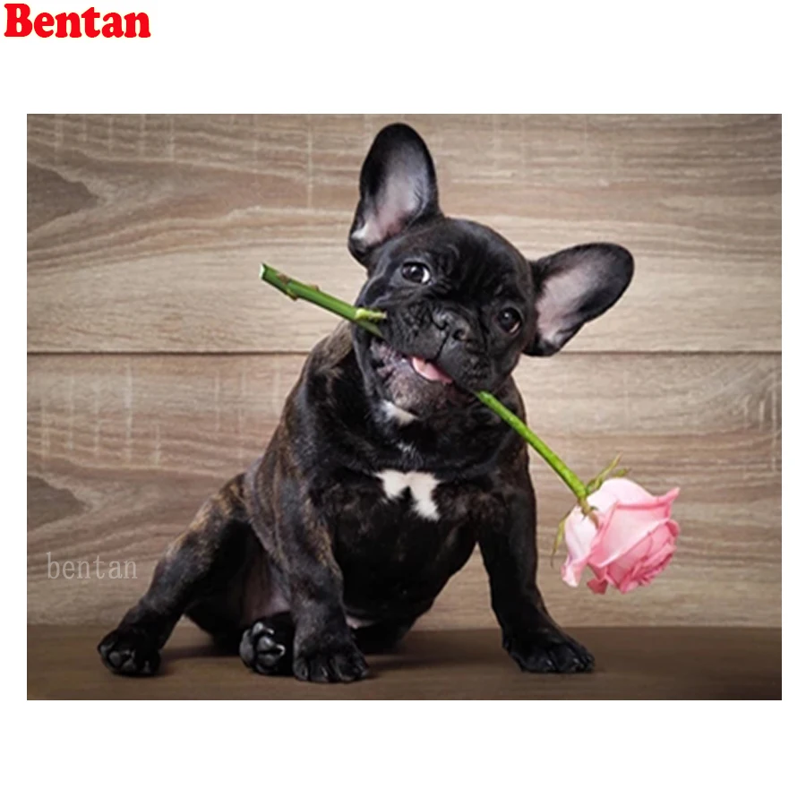 5D полная квадратная круглая дрель Алмазная картина Французский бульдог мозаика Алмазная вышивка милая собака крест с цветами розы набор стежков Декор