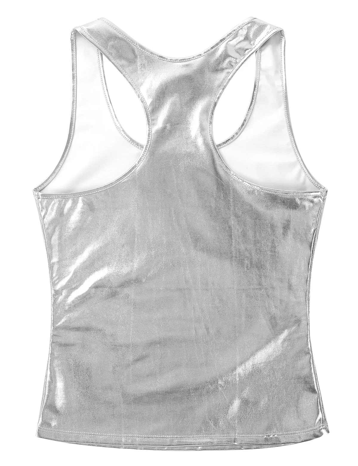 Женская танцевальная одежда для ночного клуба, танцевальные майки в стиле панк, блестящий облегающий топ-борцовка с металлической спиной, летняя майка, жилет