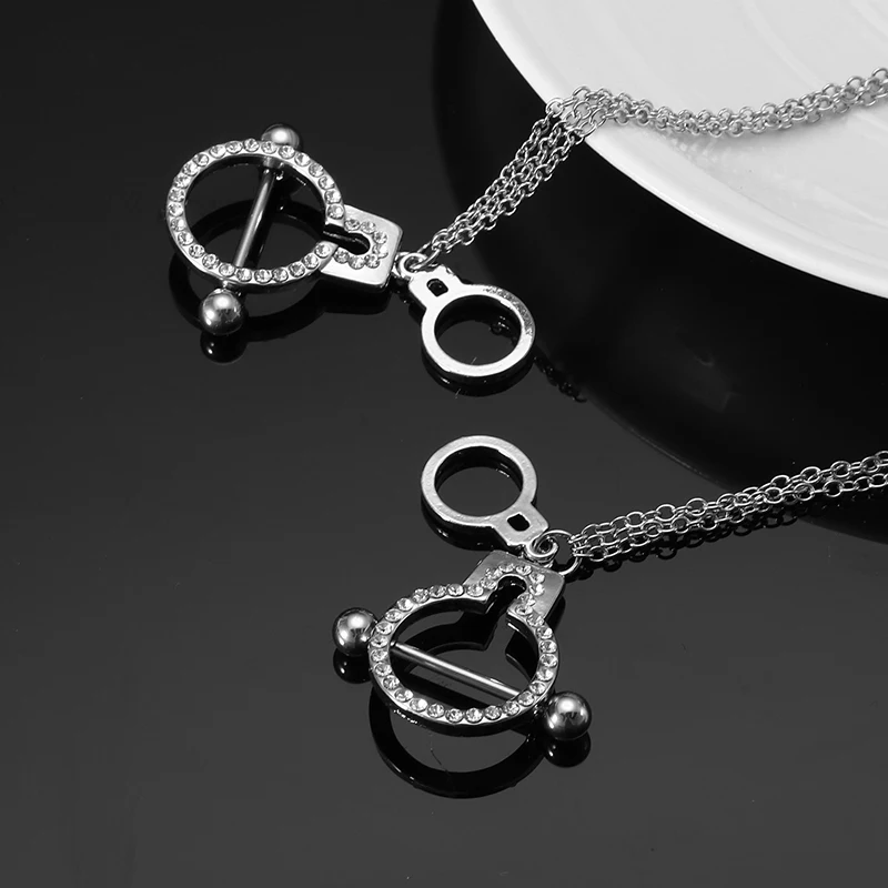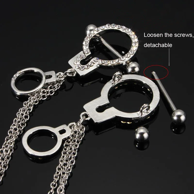 Наручники, кольцо для сосков, длинная цепочка, ювелирные изделия из хирургической стали для тела, пирсинг, модные мужские и женские ювелирные изделия Стразы для прокола
