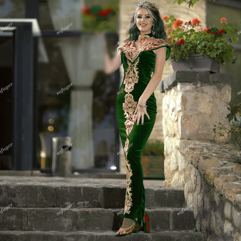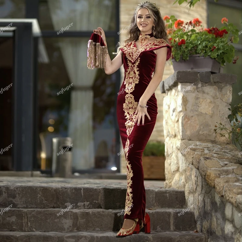 Вечерние платья-русалки бордового цвета, марокканский кафтан без съемного шлейфа, Золотая аппликация, вечернее платье знаменитости, праздничное платье