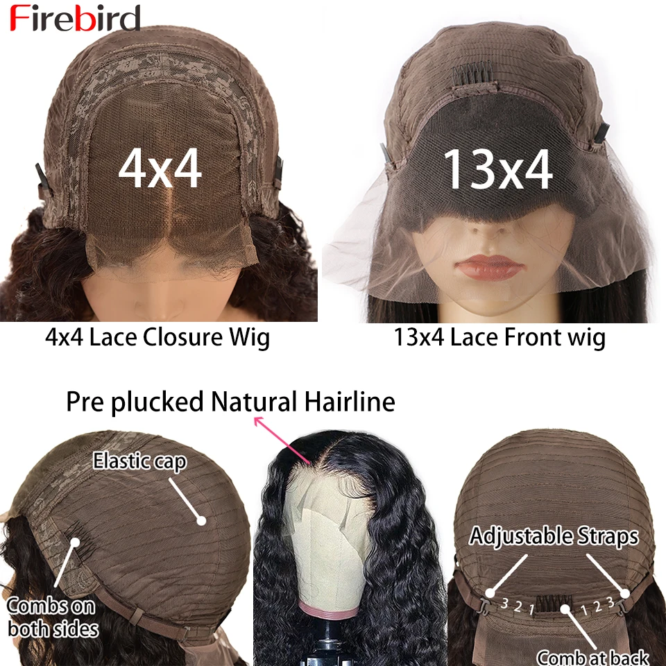 Парик с сетчатой фронтальной линией Firebird, 13x4, парики из натуральных волос, волнистые волосы, бразильский парик холодной волны для женщин 28, 30 дюймов