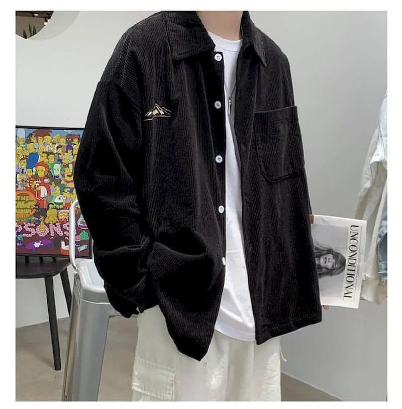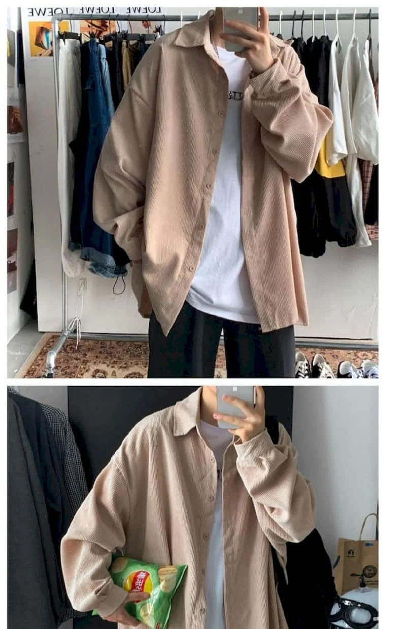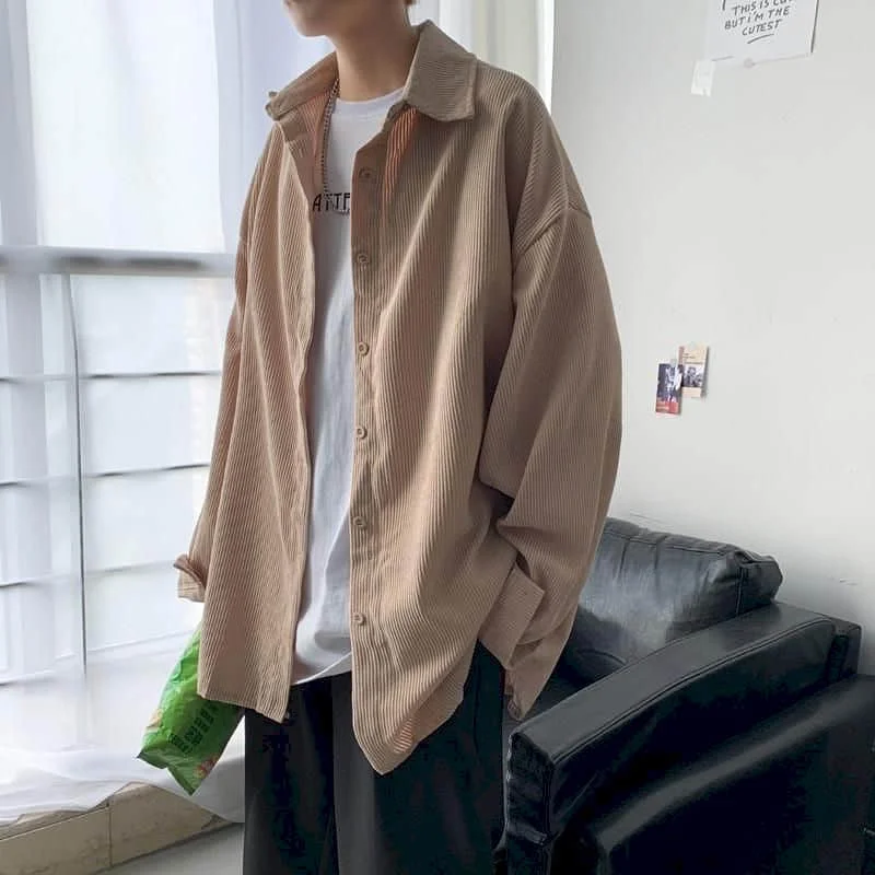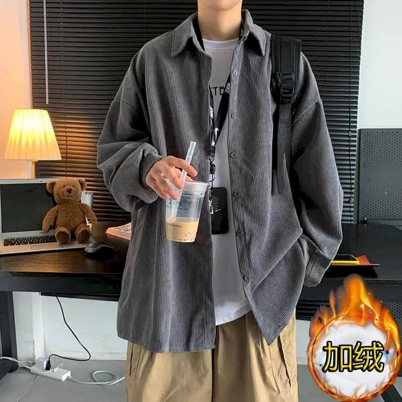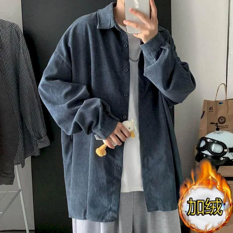 Мужская Повседневная рубашка в Корейском стиле с рюшами, красивый вельветовый пиджак в стиле Харадзюку, универсальная Осенняя рубашка в гонконгском стиле с длинным рукавом