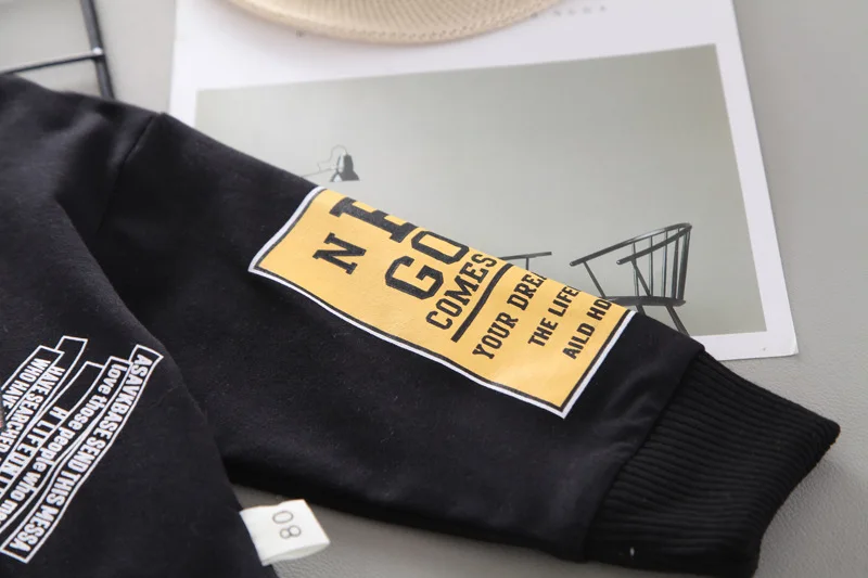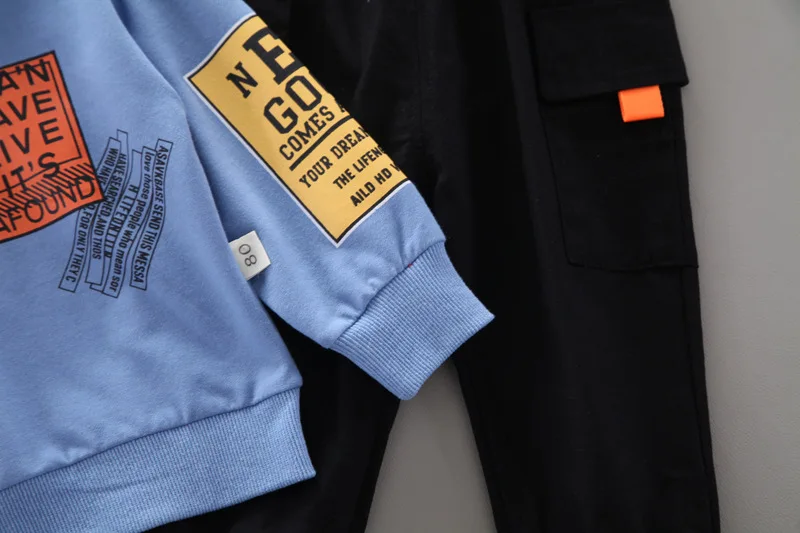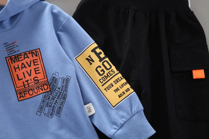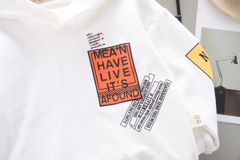 Новинка, модная детская одежда на весну и осень, повседневные штаны с капюшоном и надписью для маленьких девочек и мальчиков, комплект из 2 предметов, Детский костюм, спортивная одежда для младенцев