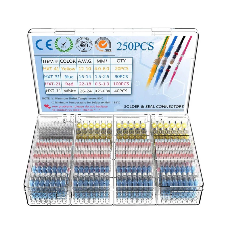 ● 1 × 250 шт. Термоусадка Паяные соединители (четыре размера/цвета)