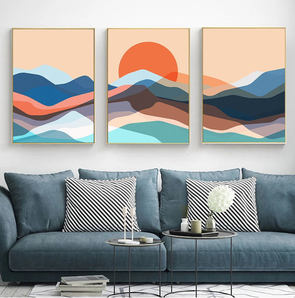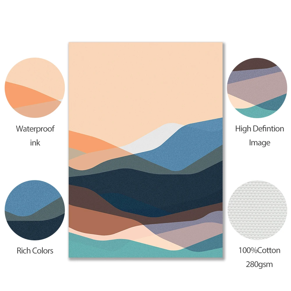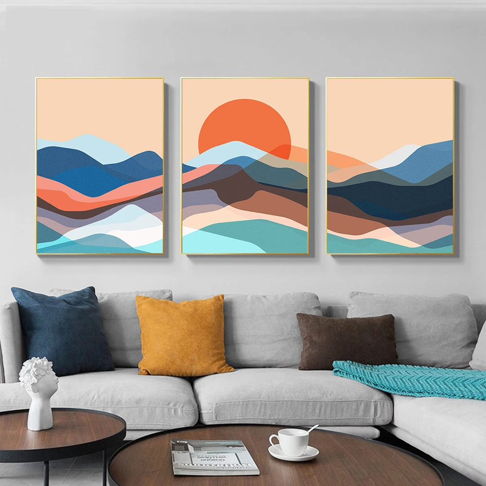 Скандинавский абстрактный пейзаж, океан, закат, настенные художественные плакаты, Цветные Волны, холст, живопись, картины для гостиной, домашний декор