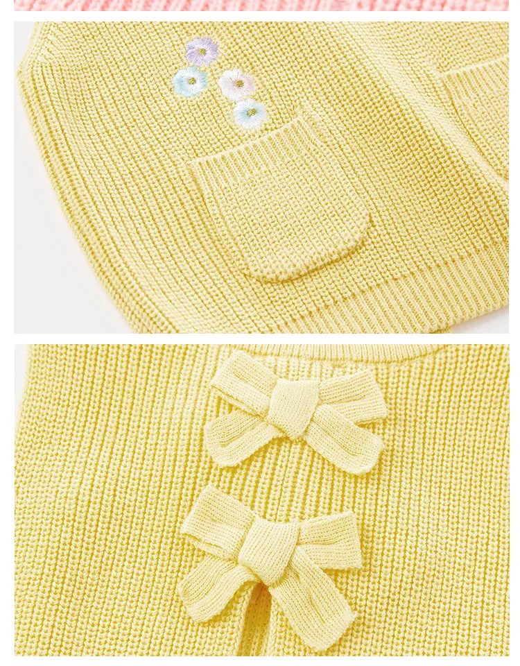 Пальто детское трикотажное, без рукавов, с бантом и цветочной вышивкой, с карманами, DBJ16826-1