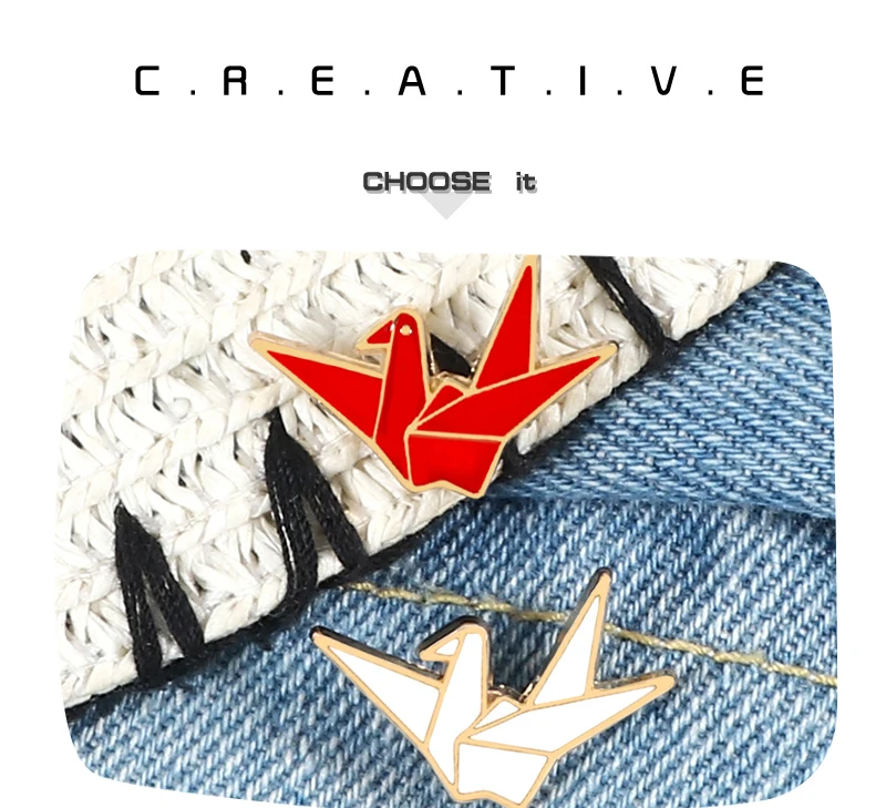 Брошь на булавке с бумажным Журавлями, креативная эмалевая брошь с животными из оригами на лацкан, значок с мультяшной пряжкой, благословение на удачу, ювелирное украшение, подарок для друзей