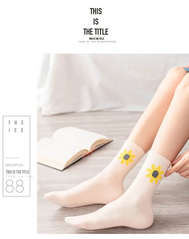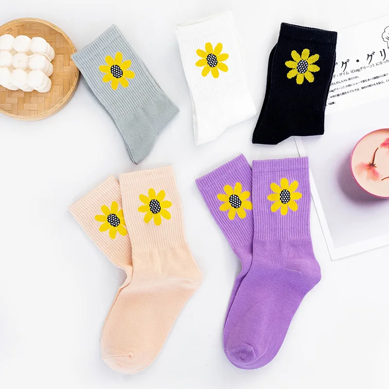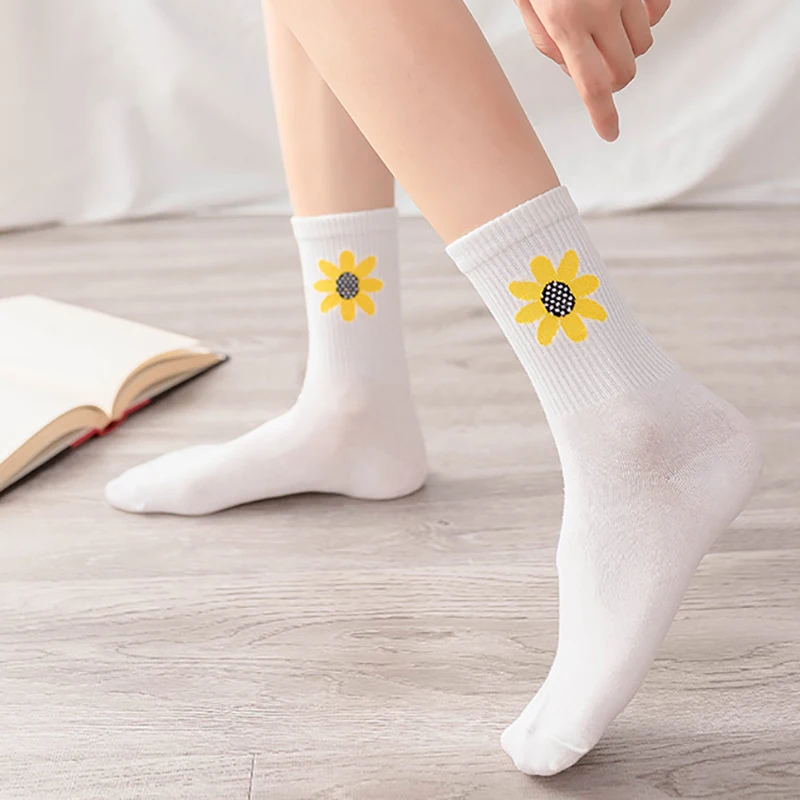 Милые носки с подсолнухами kawaii harajuku calcetines woman kobieta skarpety корейский mujer chaussette skarpetki женские яркие носки