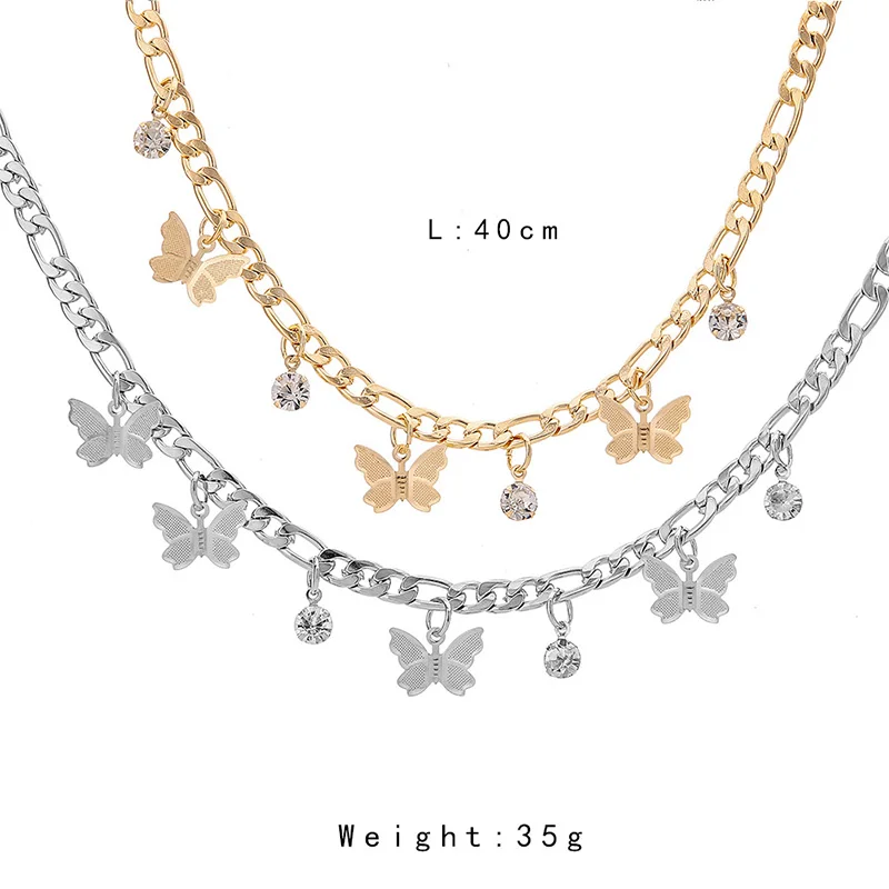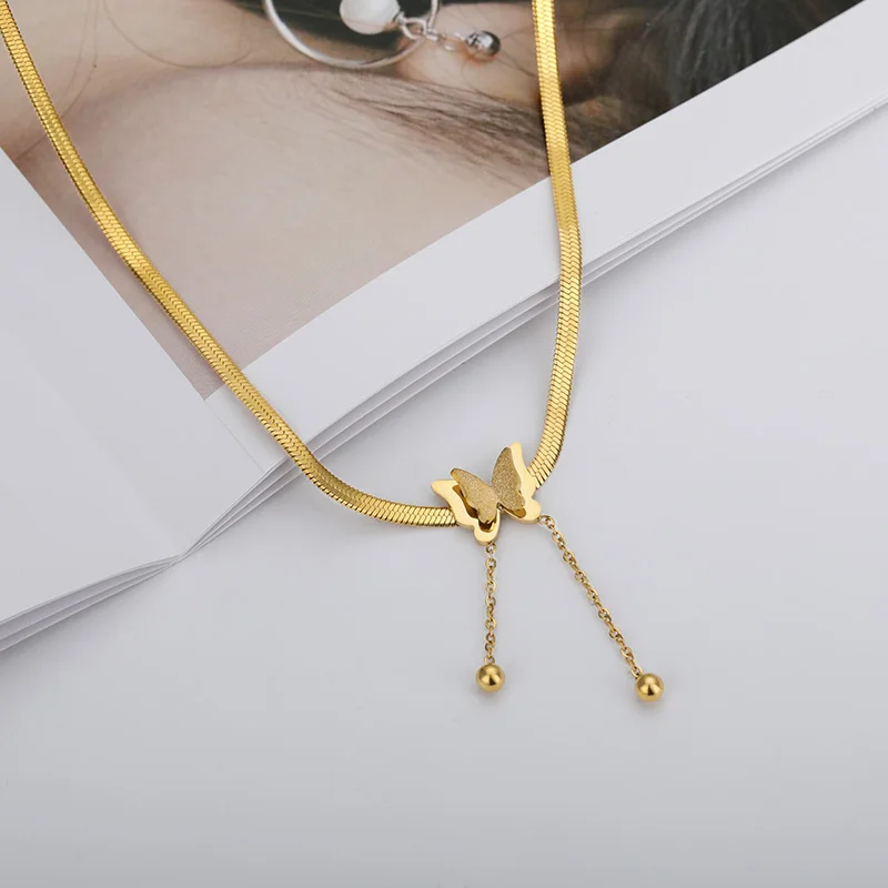 Чокер Женский Регулируемый из нержавеющей стали, с подвеской в виде бабочки