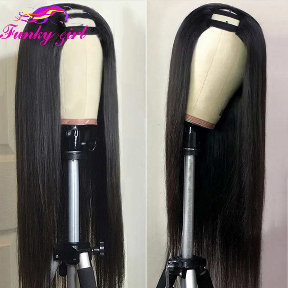 FG прямые U-образные 150% плотные натуральные бразильские человеческие волосы длинные парики бразильские прямые парики без шнуровки для черных женщин 8-28 дюймов
