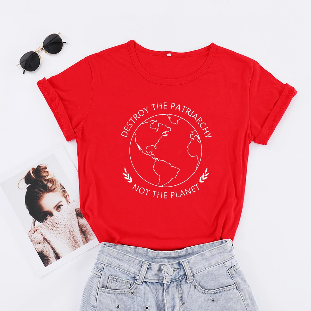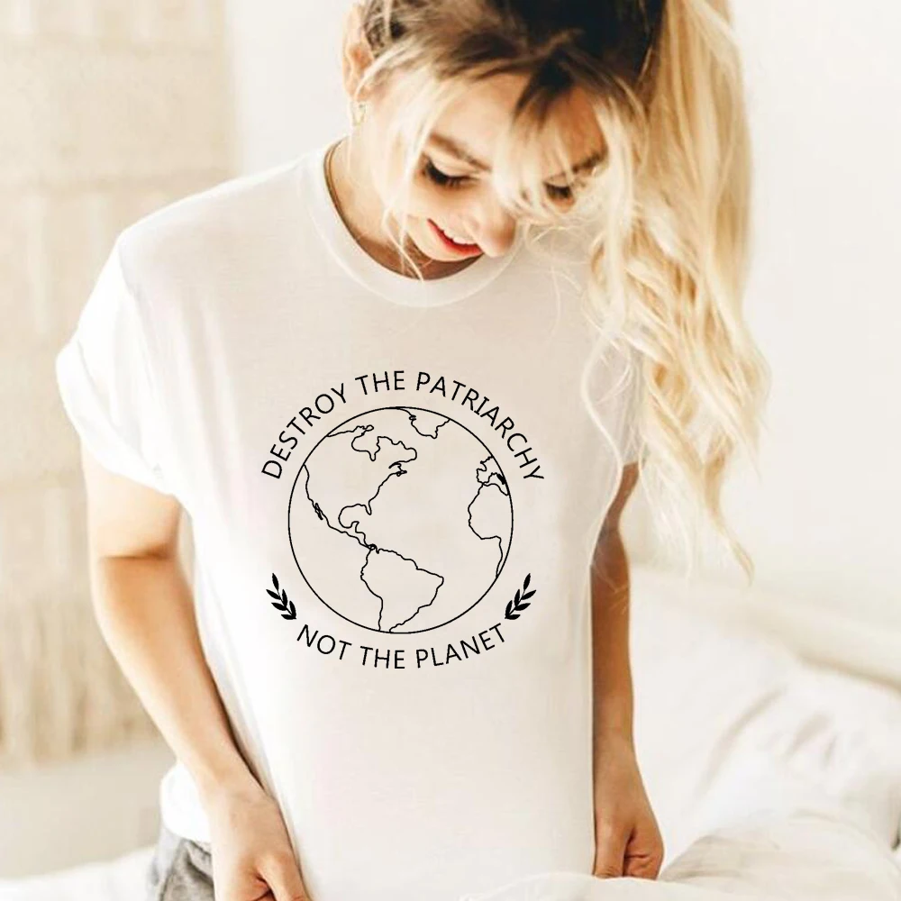 Женские футболки оверсайз с принтом «уничтожить патриархат не планета», футболка с феминистской графикой, хлопковая футболка для девочек, Прямая поставка